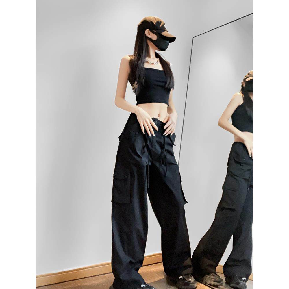 Весенний чай, красные весенние штаны, повседневные брюки, свободный крой, высокая талия, осенний