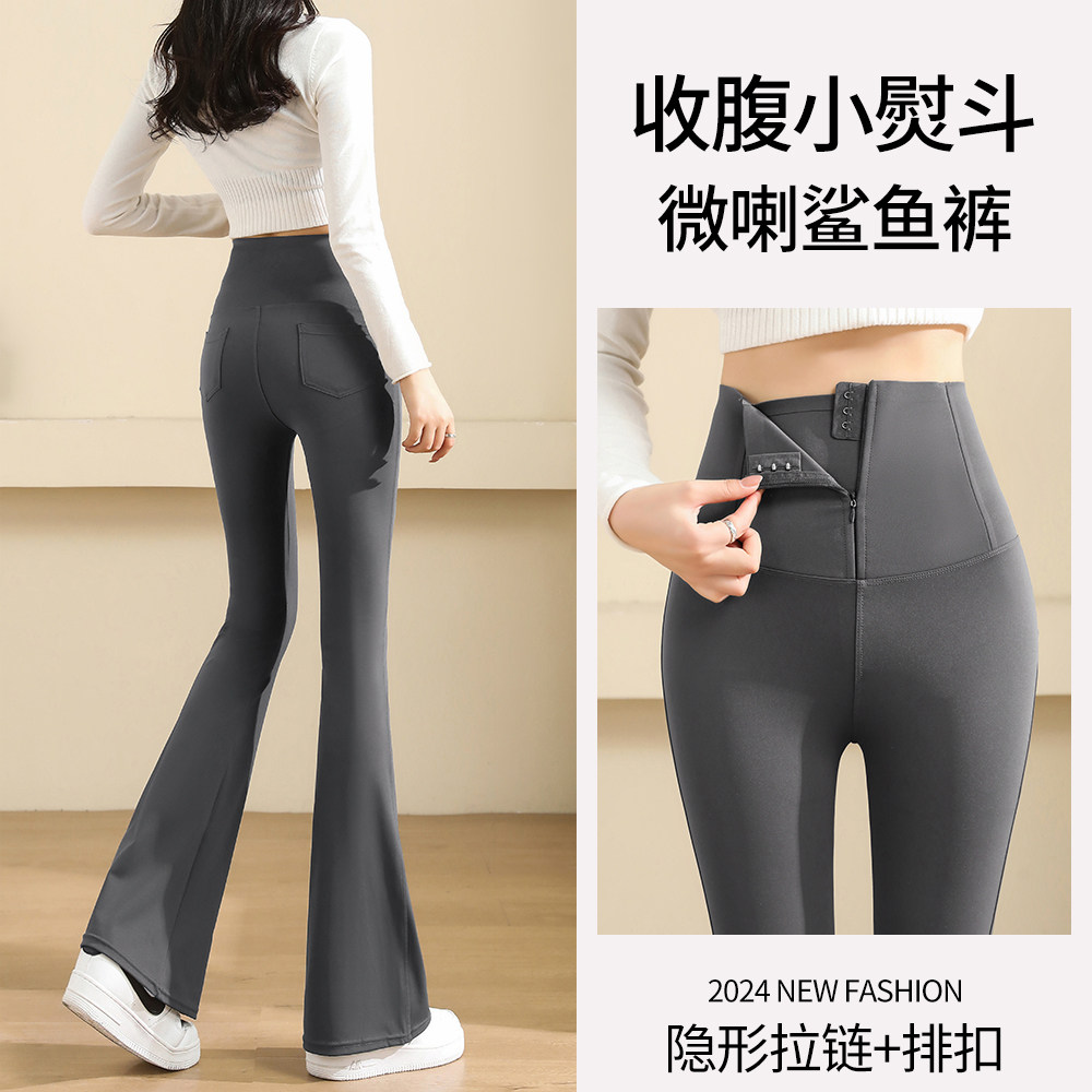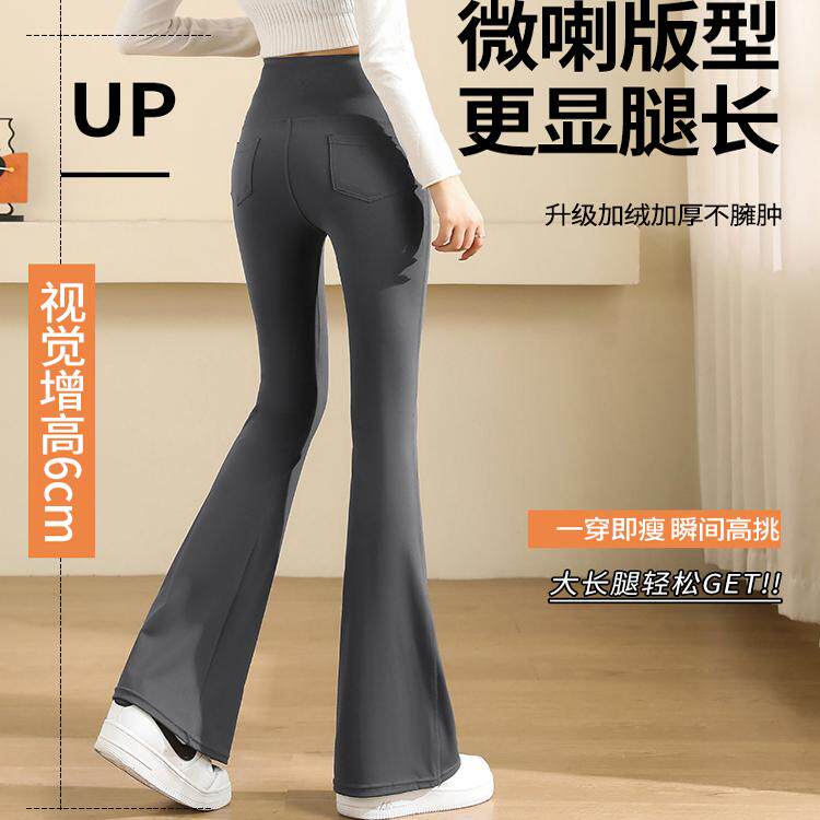Осенние штаны-клёш для йоги, флисовые штаны, приталенная длинная эластичная акула, высокая талия