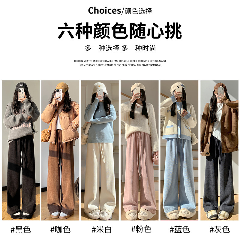 Бархатные демисезонные штаны, трикотажные флисовые цветные леггинсы, высокая талия, свободный прямой крой