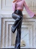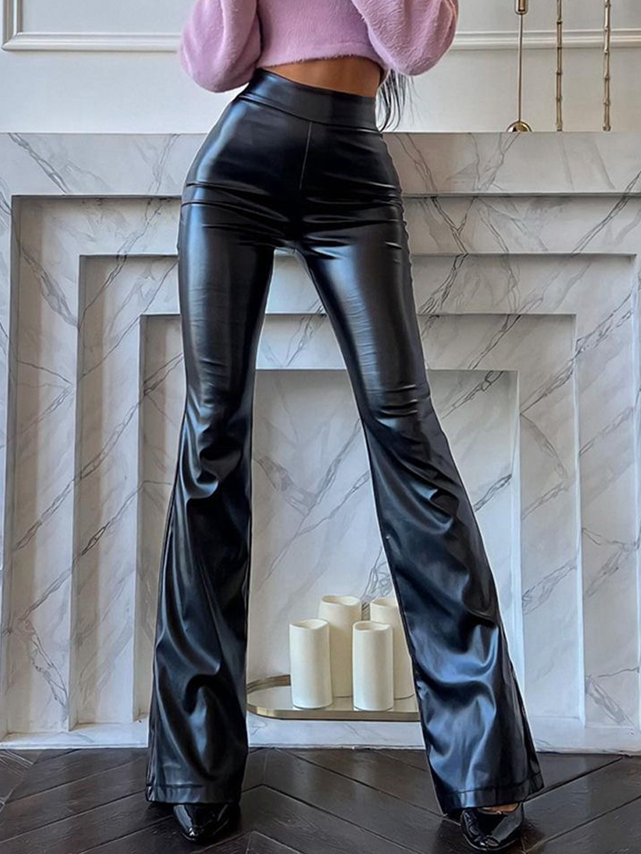 Модные блестящие полиуретановые осенние штаны, черные штаны-клёш, европейский стиль, высокая талия