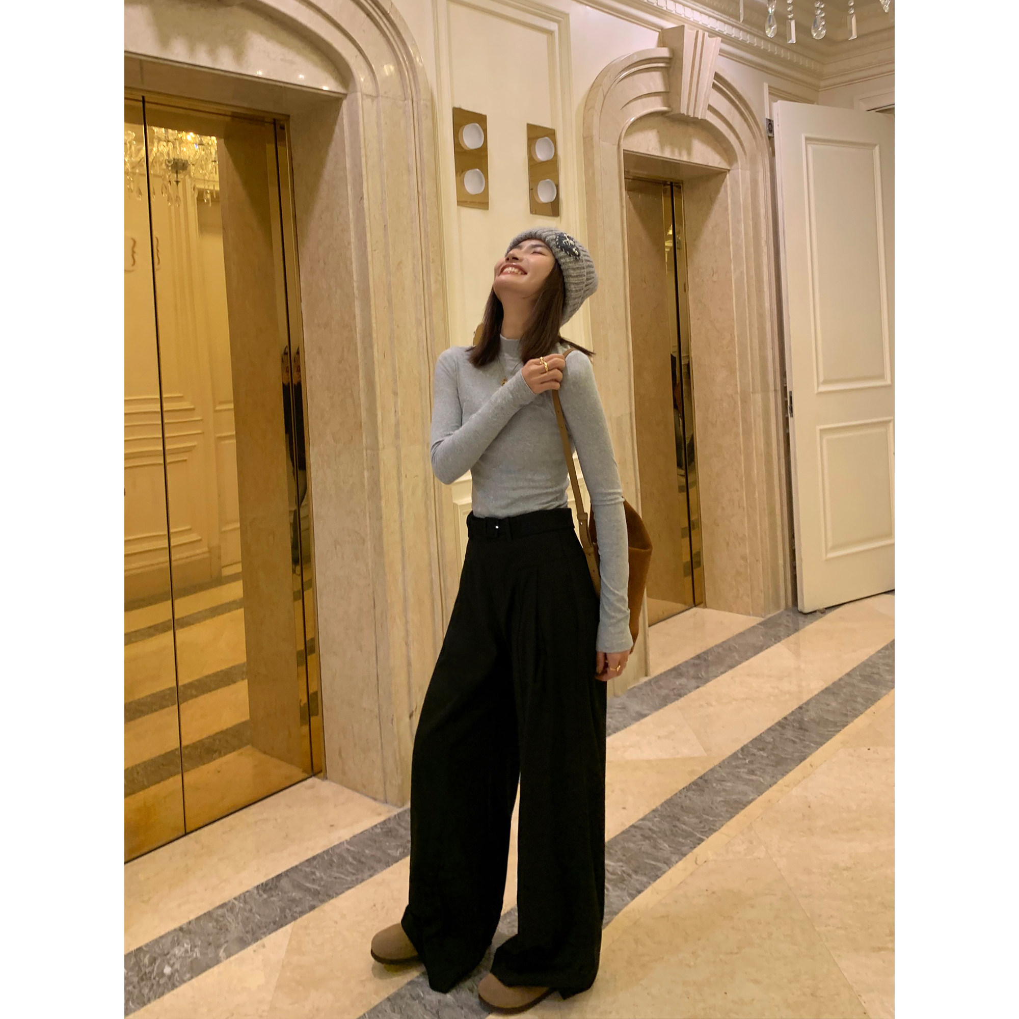 Ремень, костюм, штаны, свободный крой, высокая талия