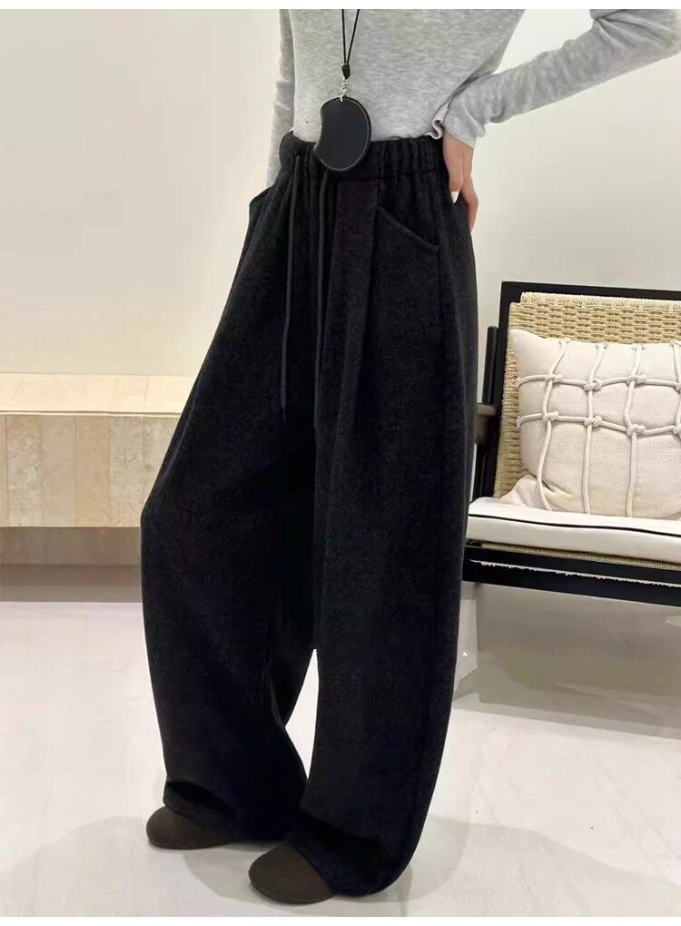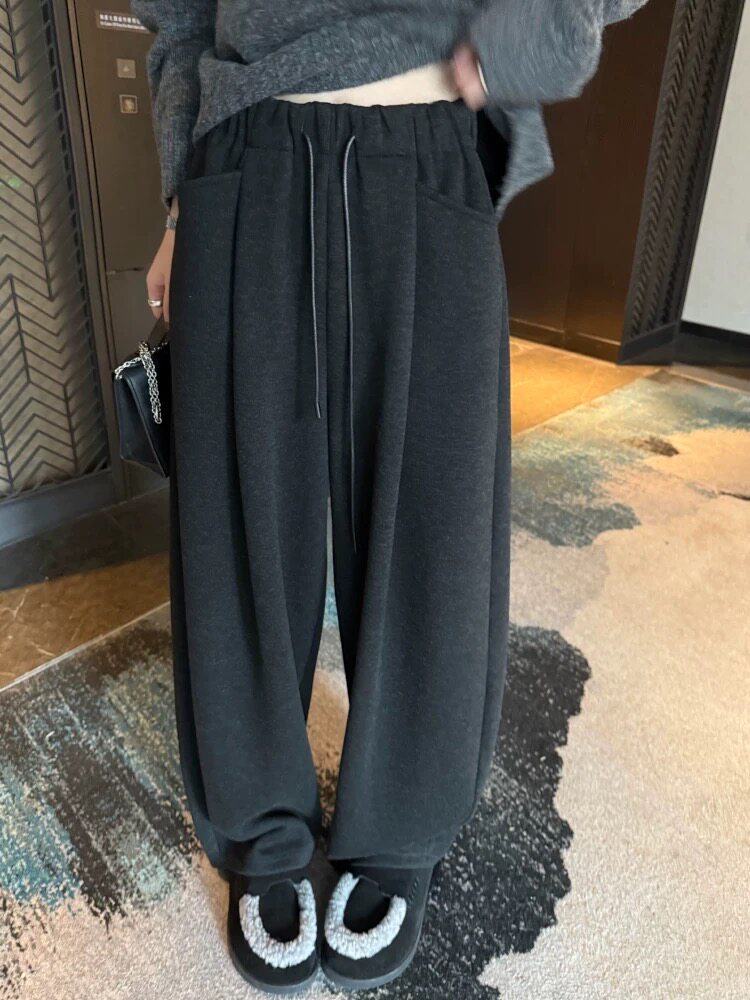 Черные утепленные зимние штаны, высокая талия, свободный прямой крой