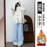 Черные демисезонные флисовые штаны для отдыха, высокая талия, оверсайз, свободный прямой крой