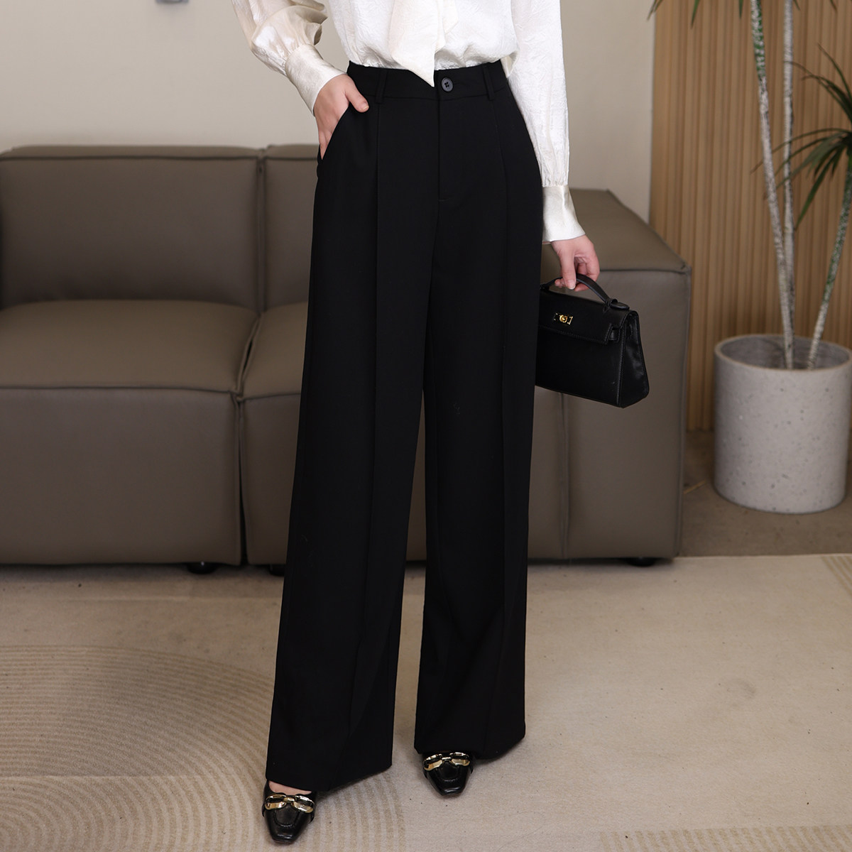 Шерстяной костюм, осенние приталенные штаны, свободный прямой крой
