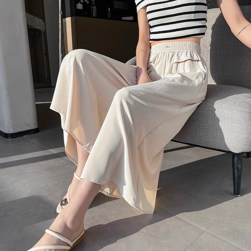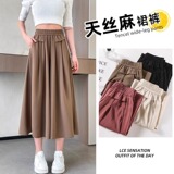 Юбка, тонкие шелковые штаны, А-силуэт, свободный крой