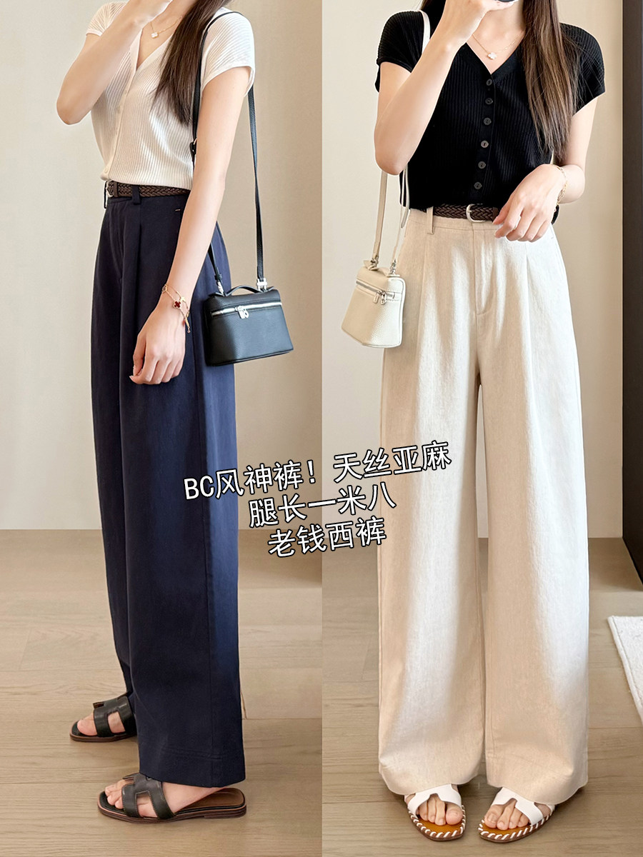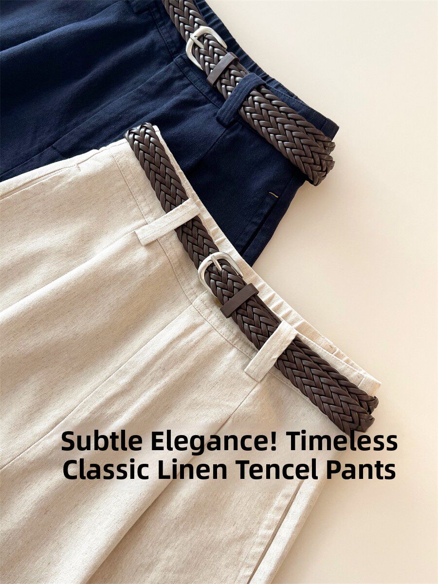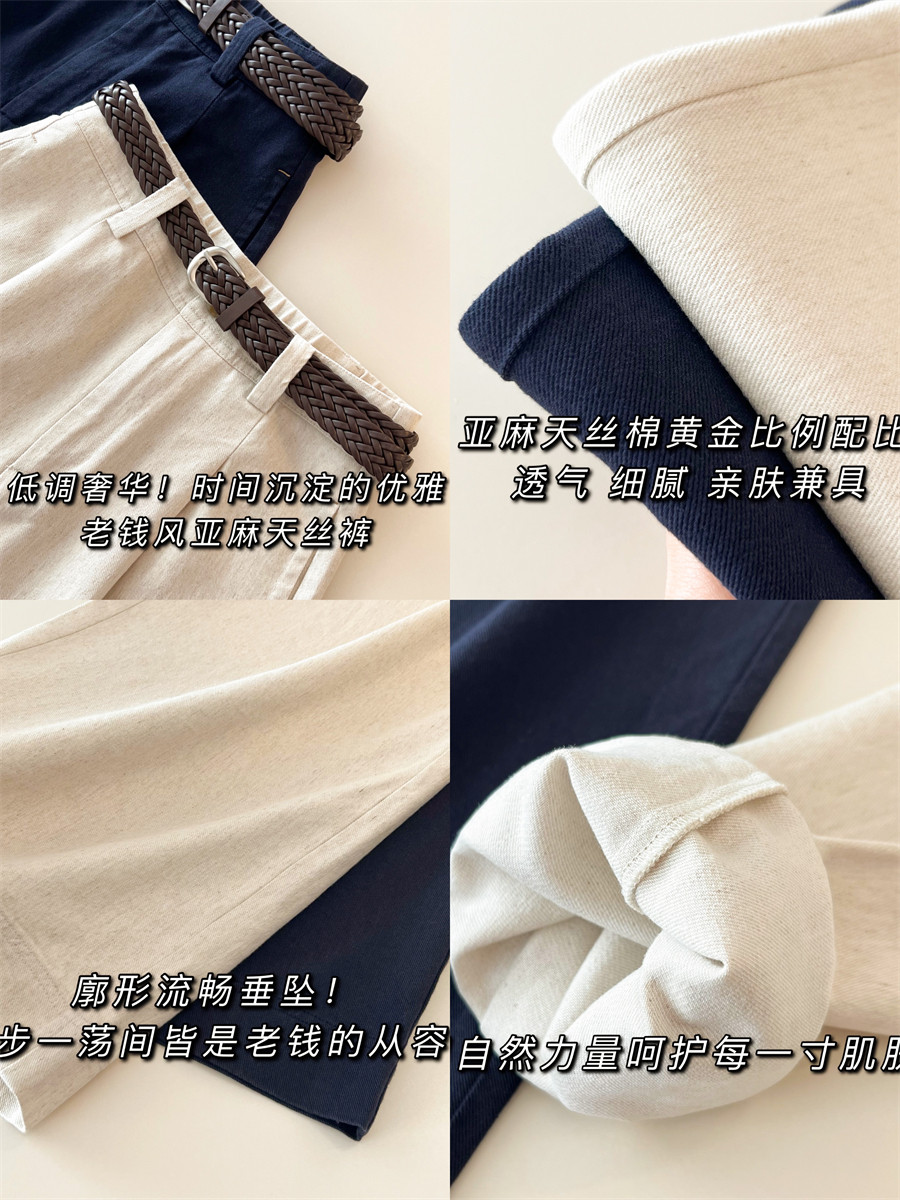Старый денежный стиль Tencel Linen Женский хлоп и льняные брюки.