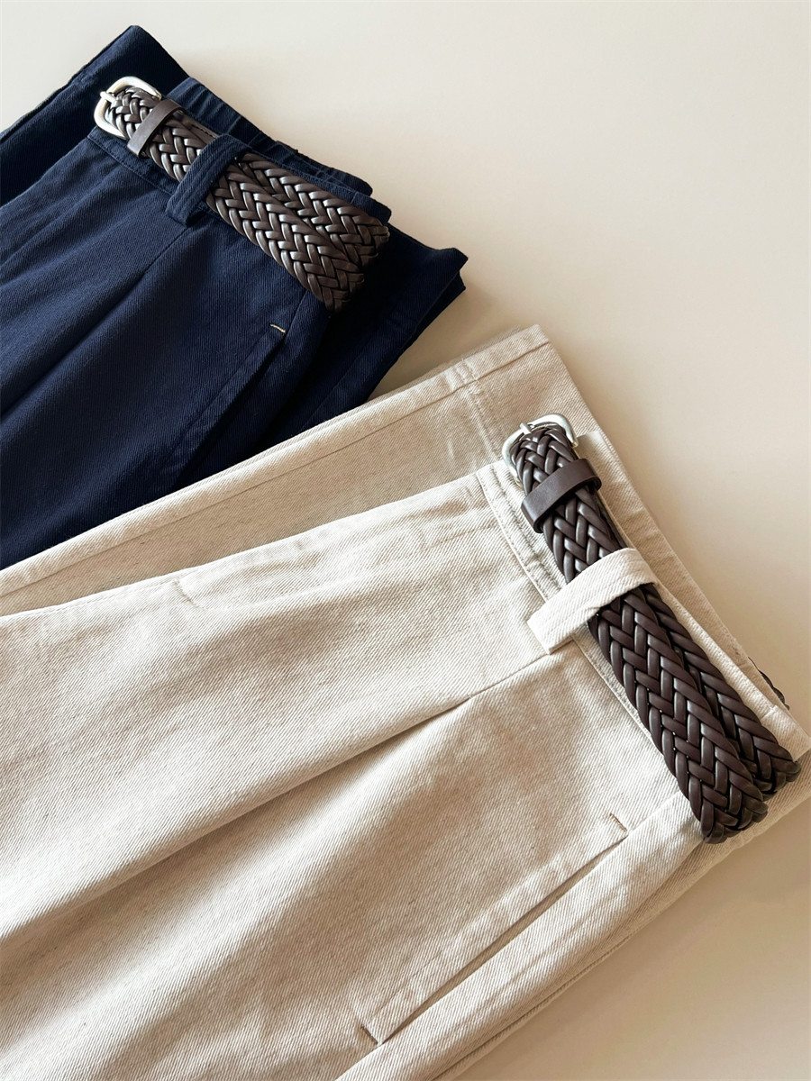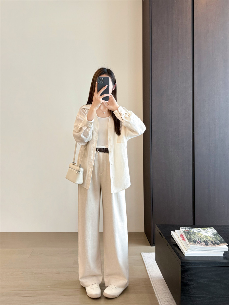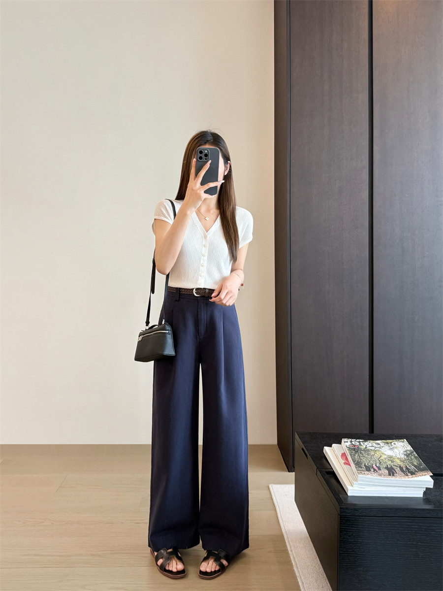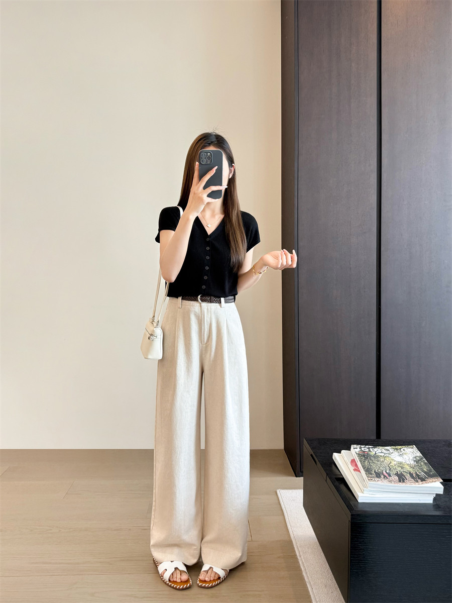Старый денежный стиль Tencel Linen Женский хлоп и льняные брюки.