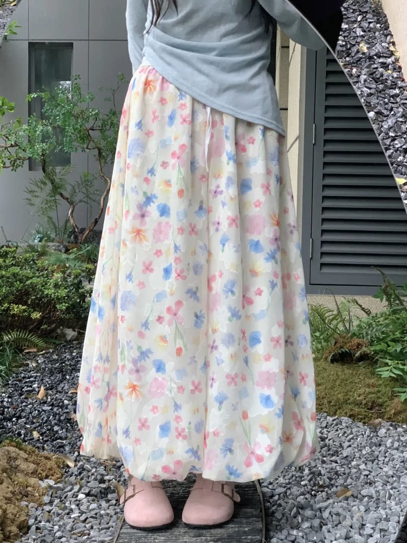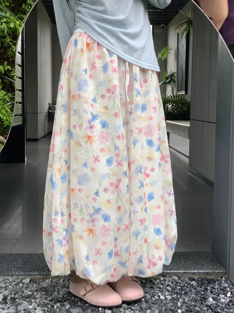 Милая юбка, приталенные штаны, большой размер, цветочный принт, французский стиль, высокая талия