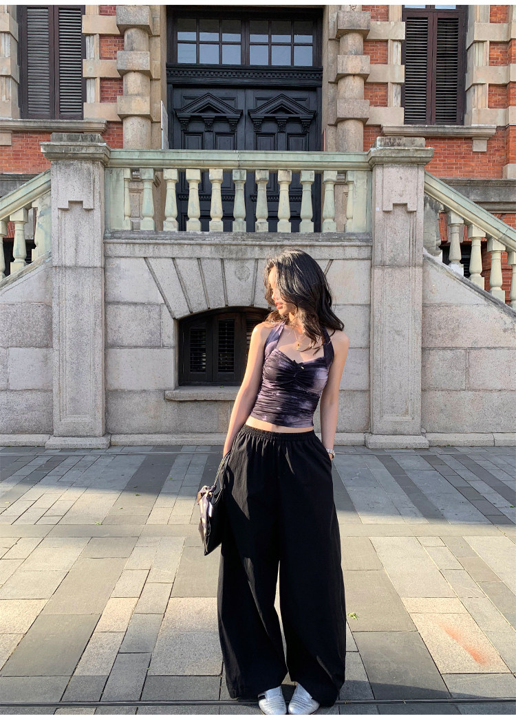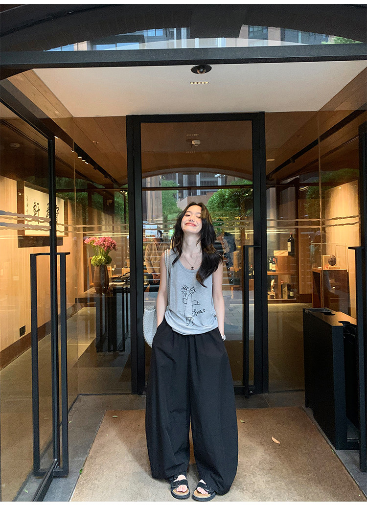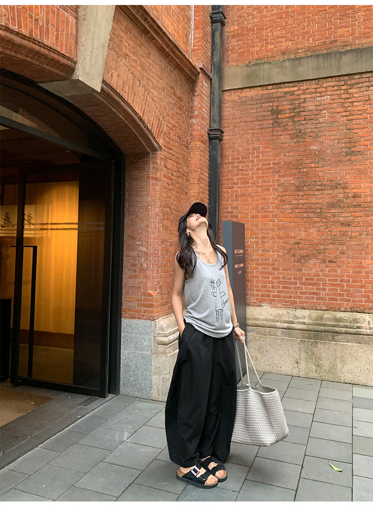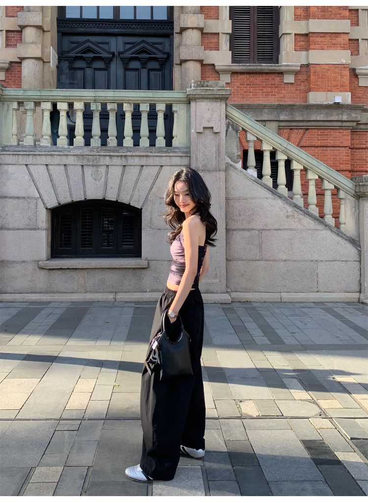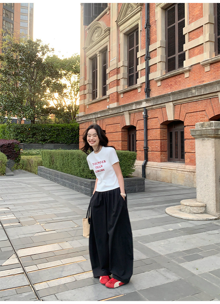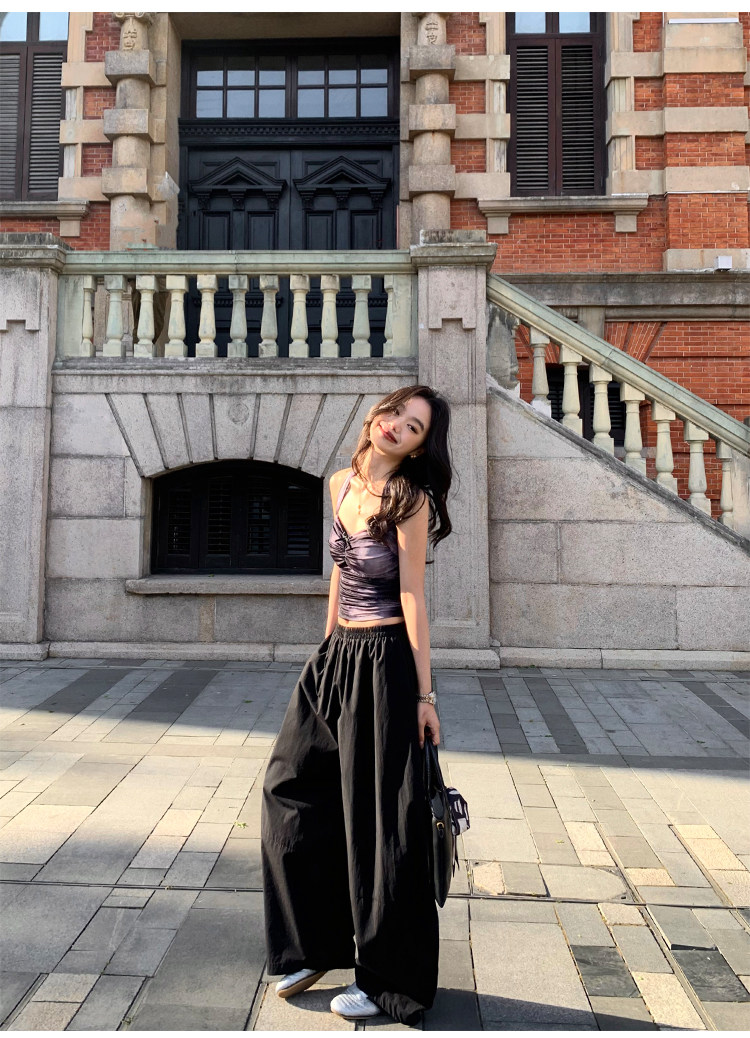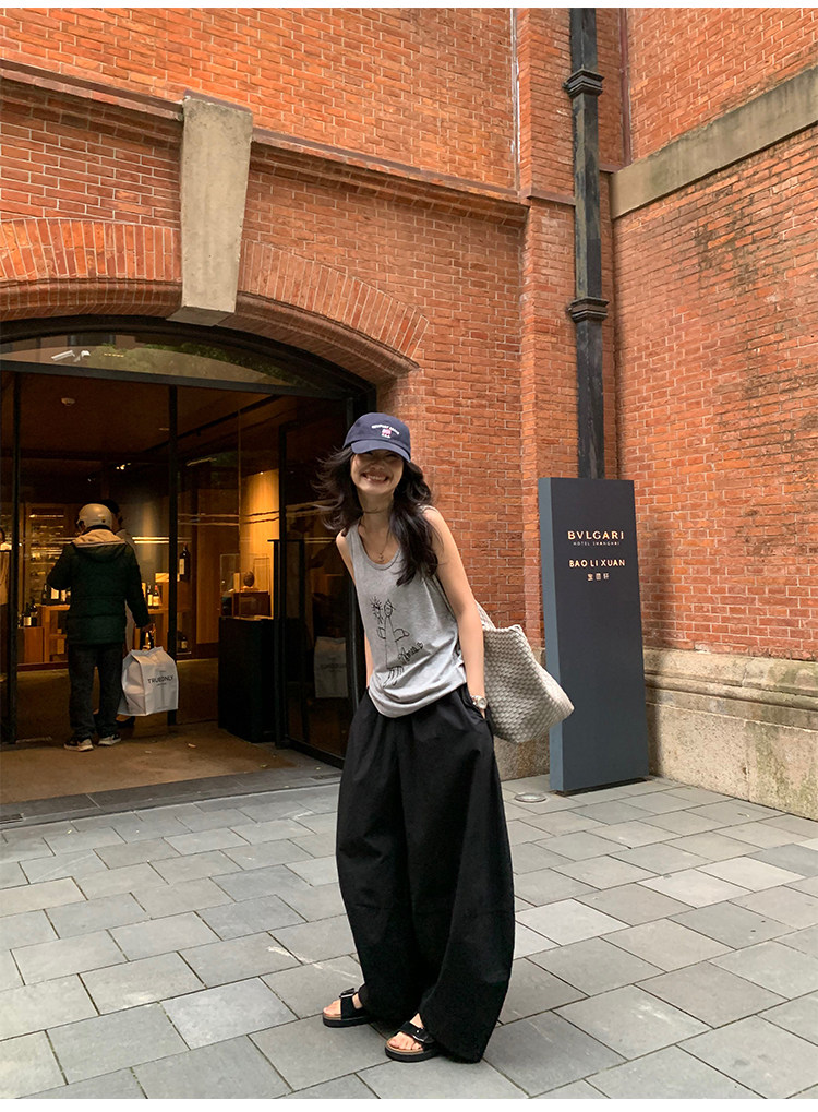 pusumede Черные цветные штаны, дизайнерский фонарь, свободный крой, тренд сезона
