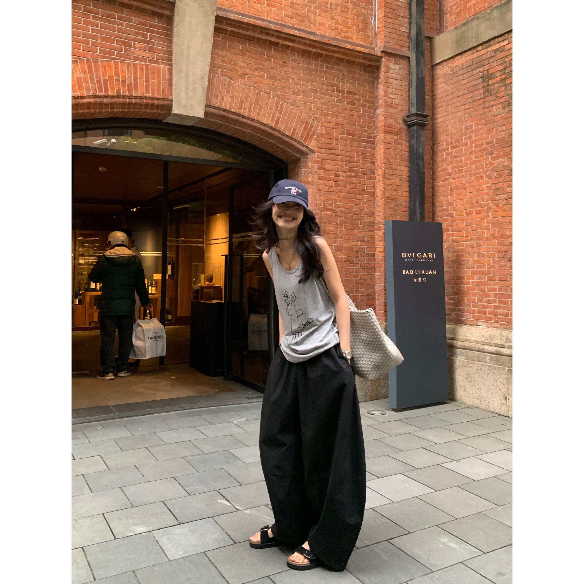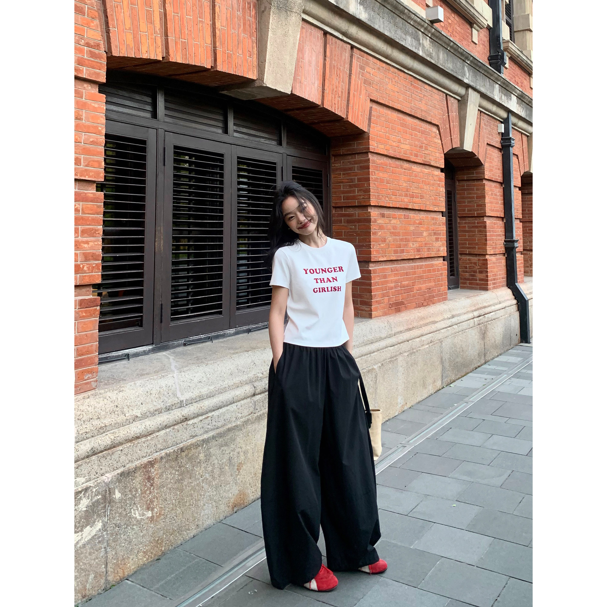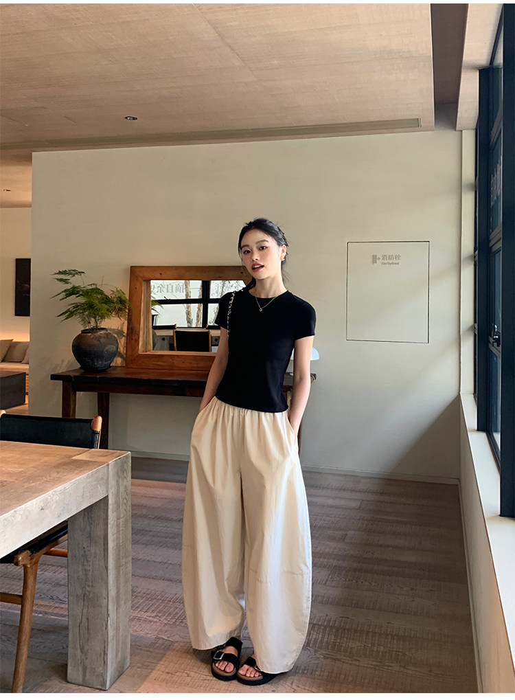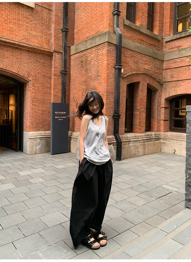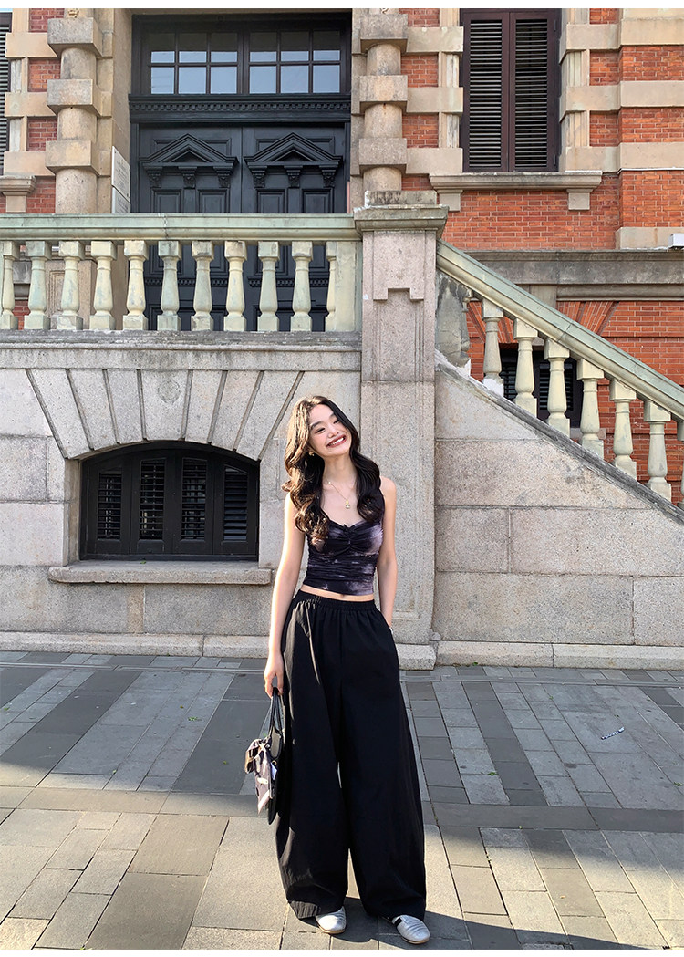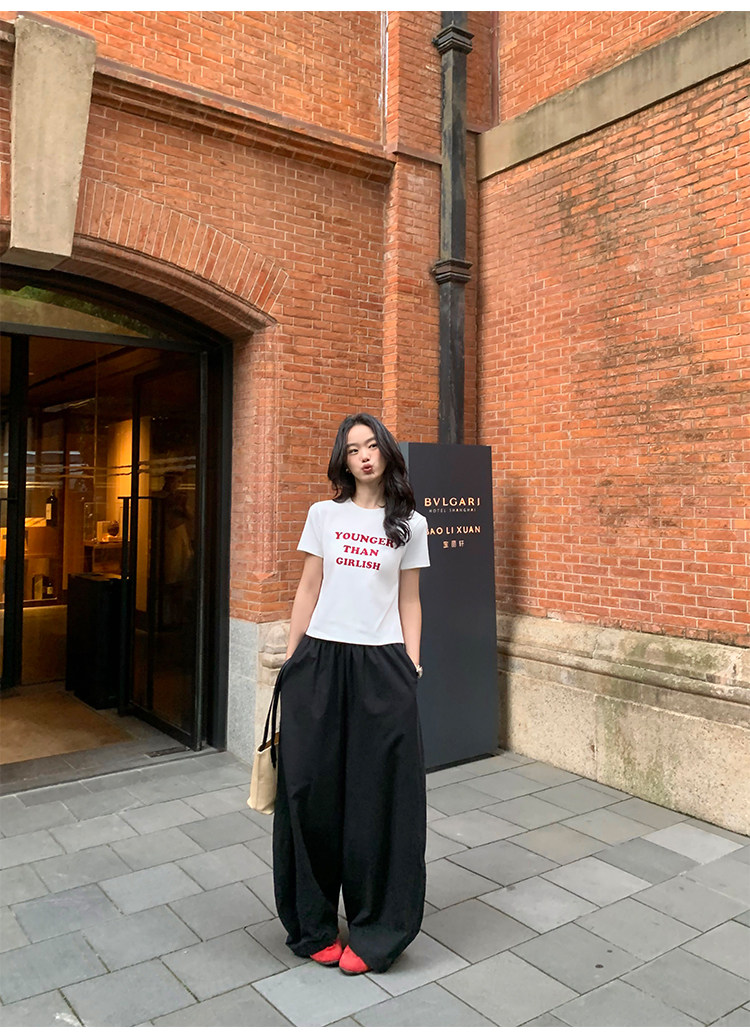 pusumede Черные цветные штаны, дизайнерский фонарь, свободный крой, тренд сезона