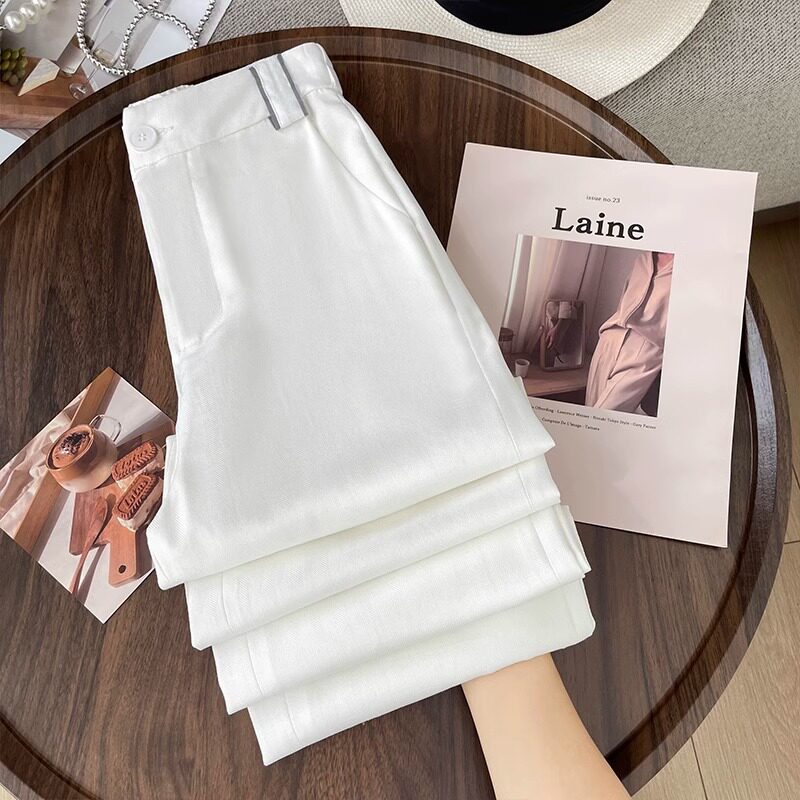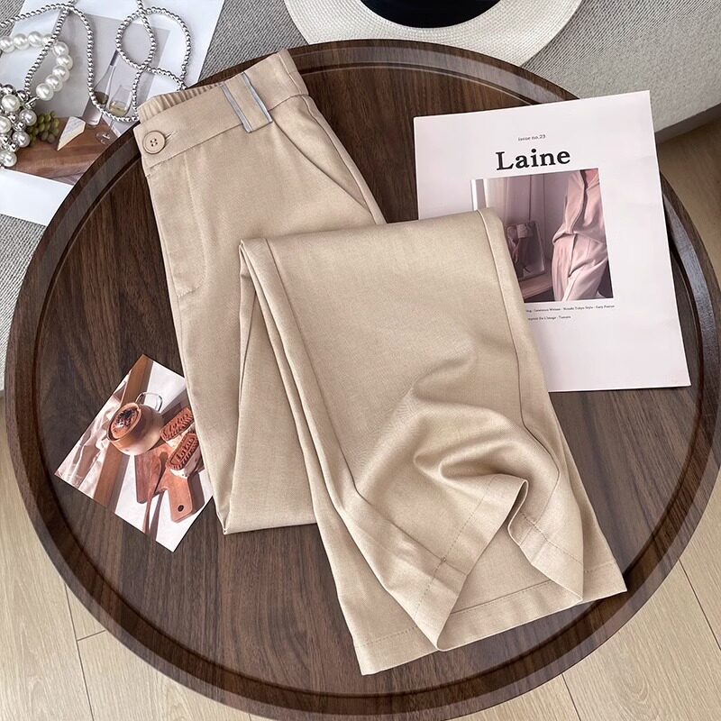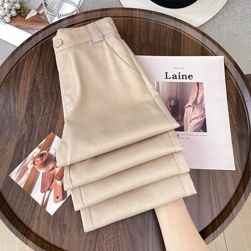 Хаки цветные элитные штаны, летний тонкий шелковый костюм, свободный прямой крой