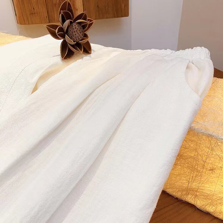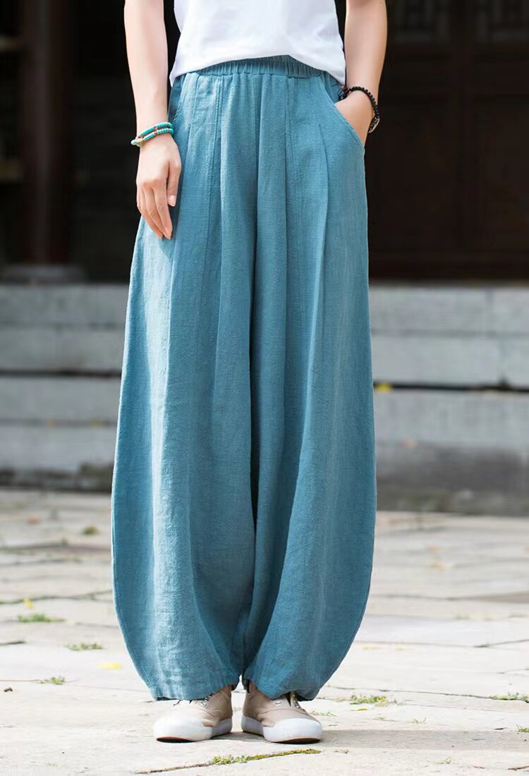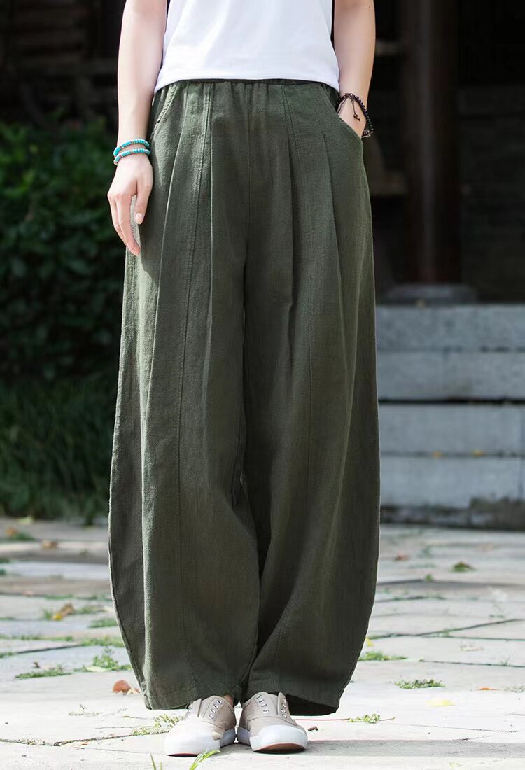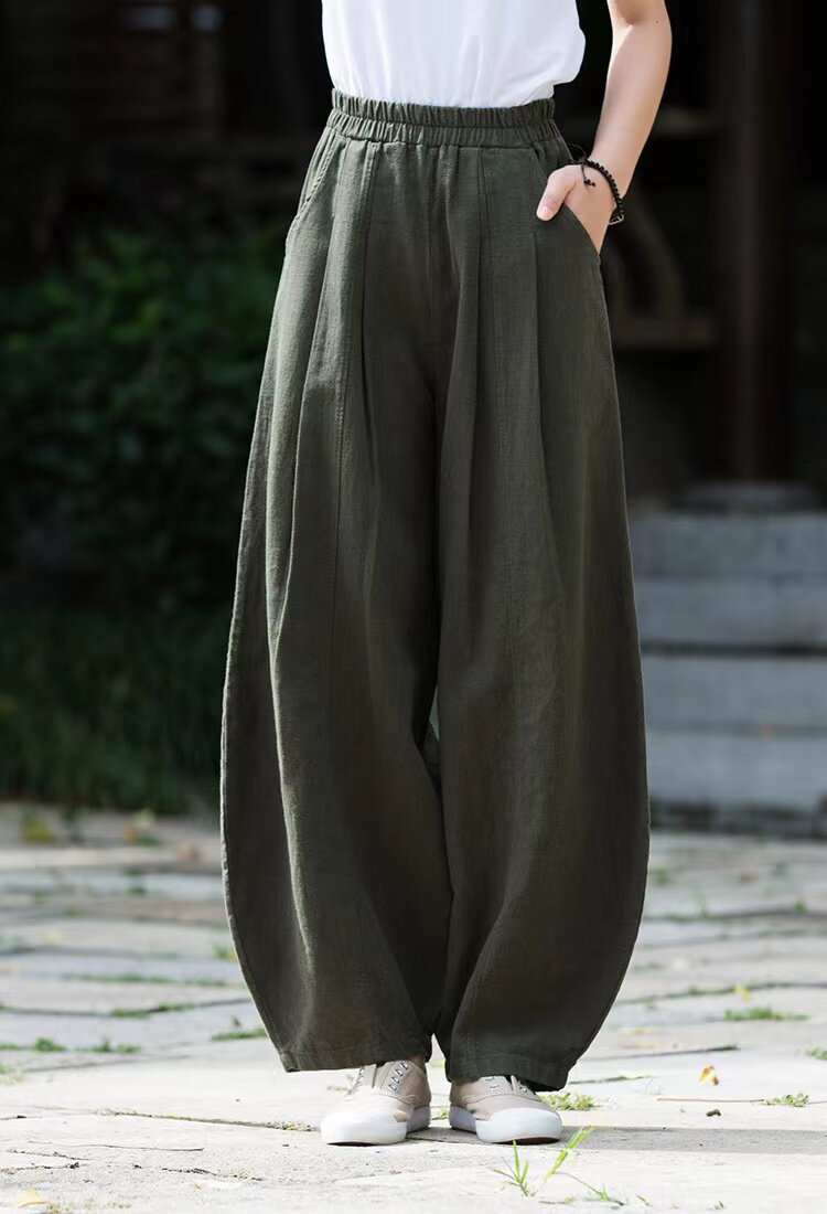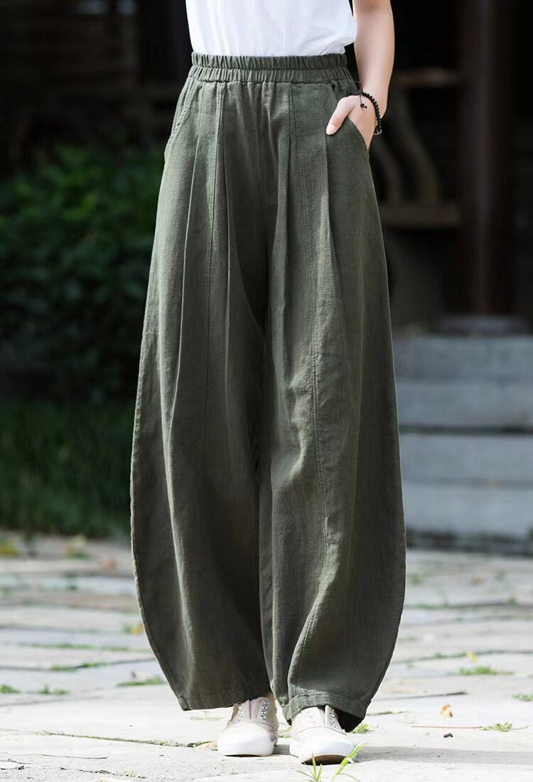 Модные универсальные демисезонные ретро штаны, фонарь, из хлопка и льна, свободный прямой крой