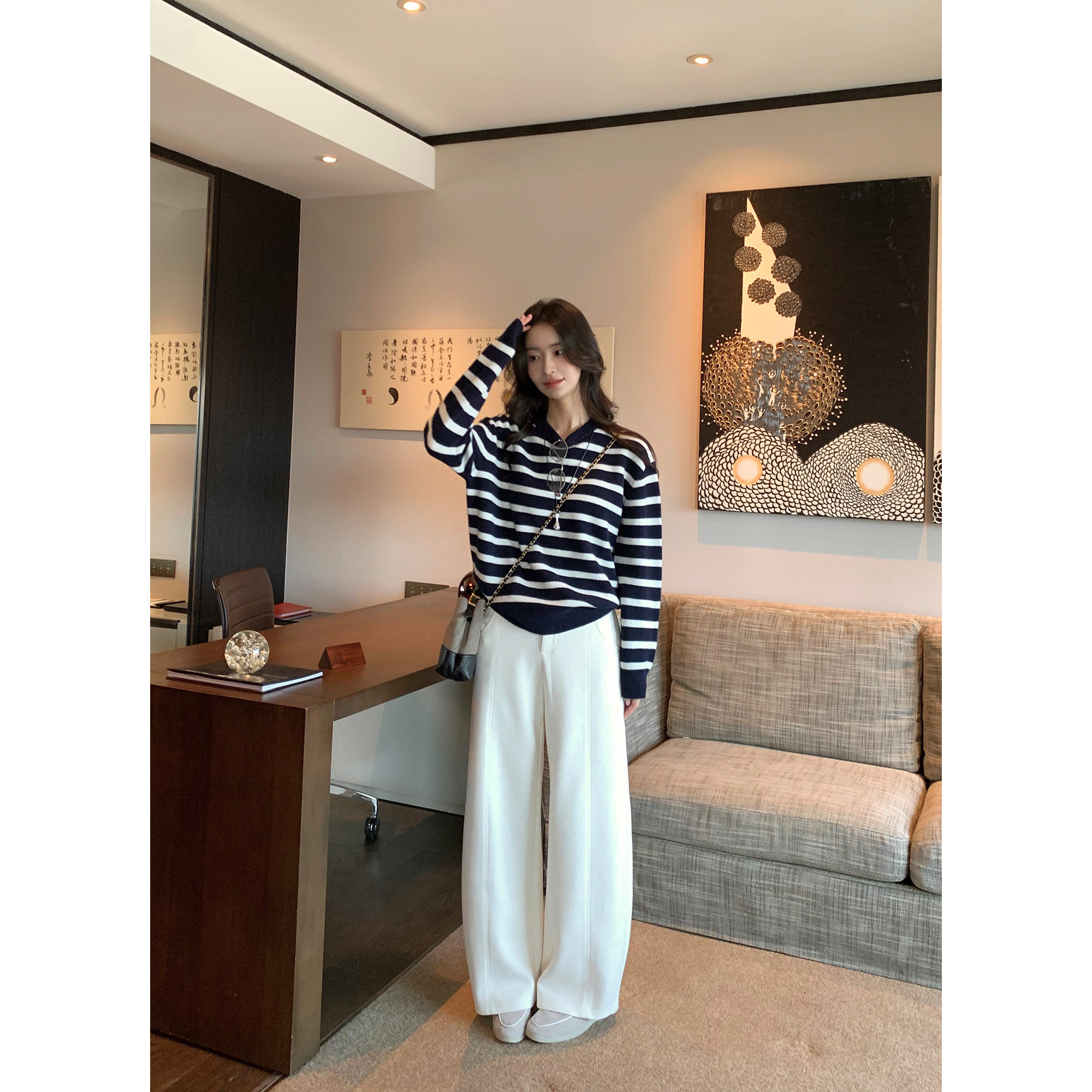pusumede Минималистичные штаны, высокая талия, оверсайз, свободный прямой крой