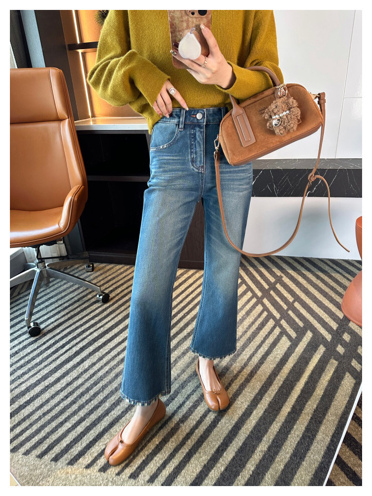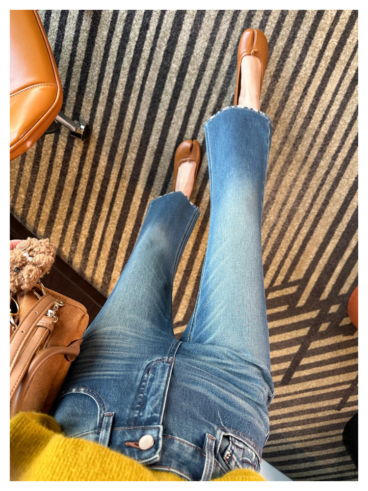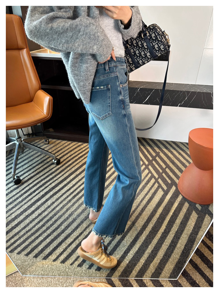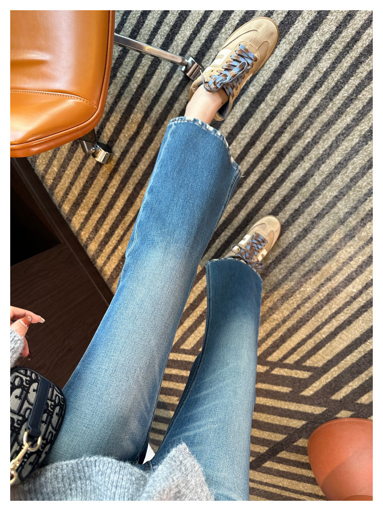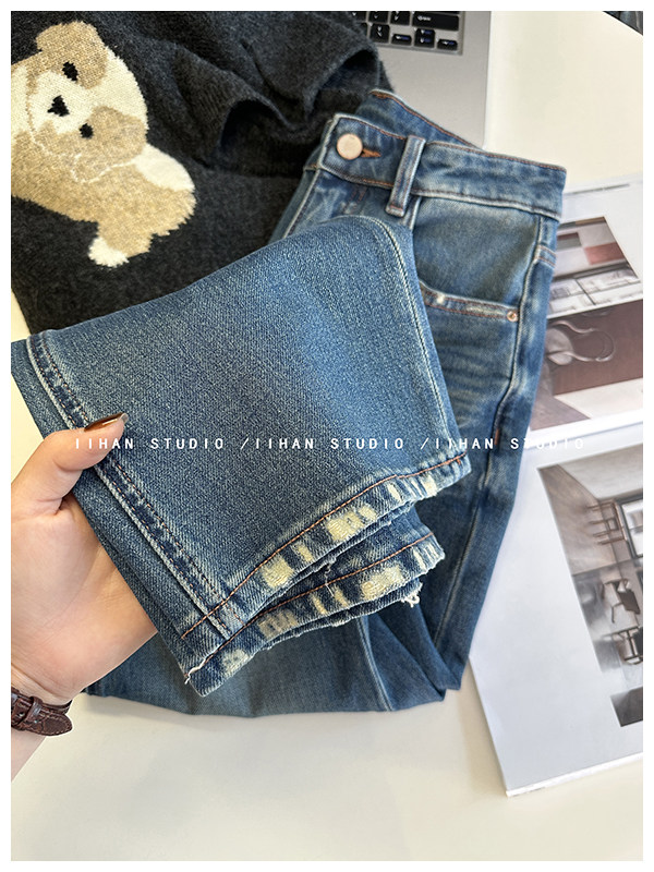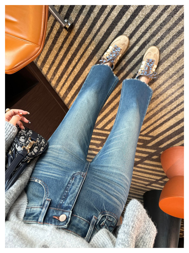 Рваные брюки в стиле ретро!Эти джинсы Bootcut с девятью точками сделают ваши ноги стройнее, когда вы их носите.