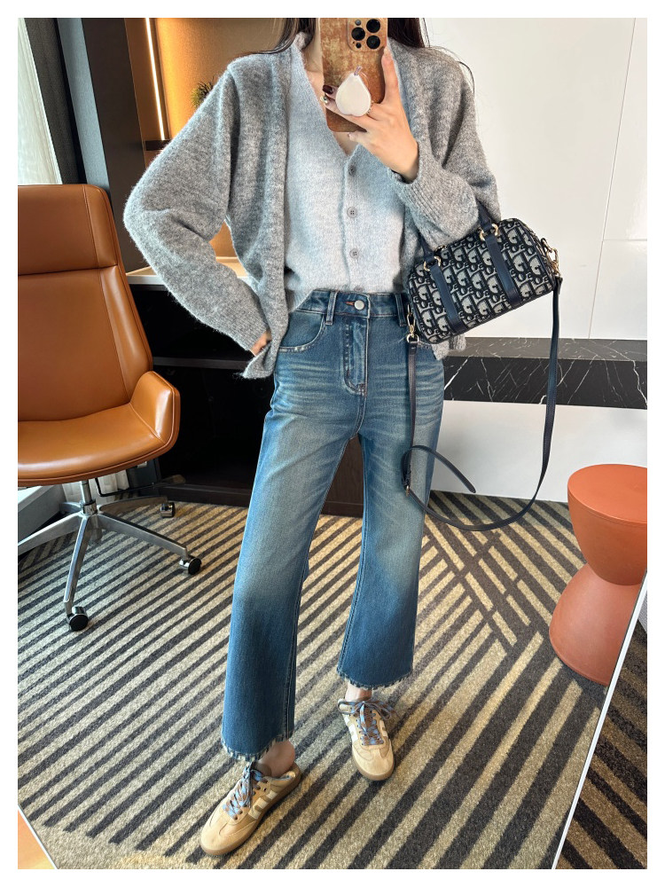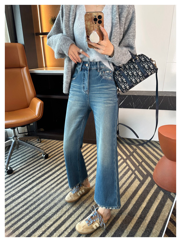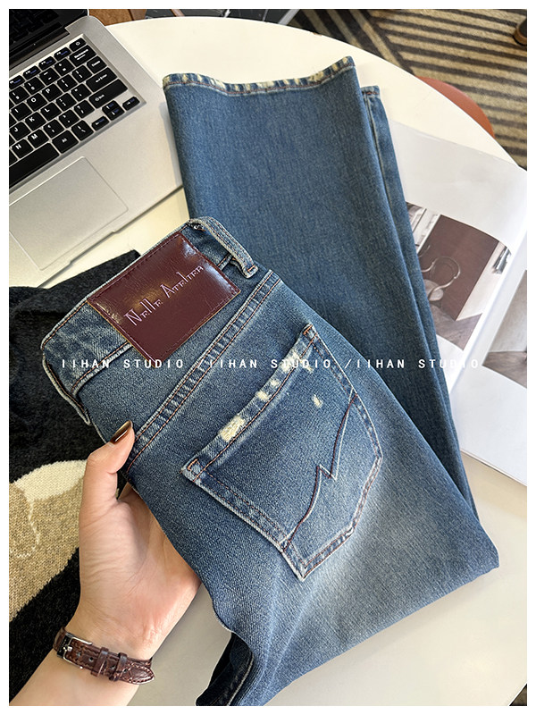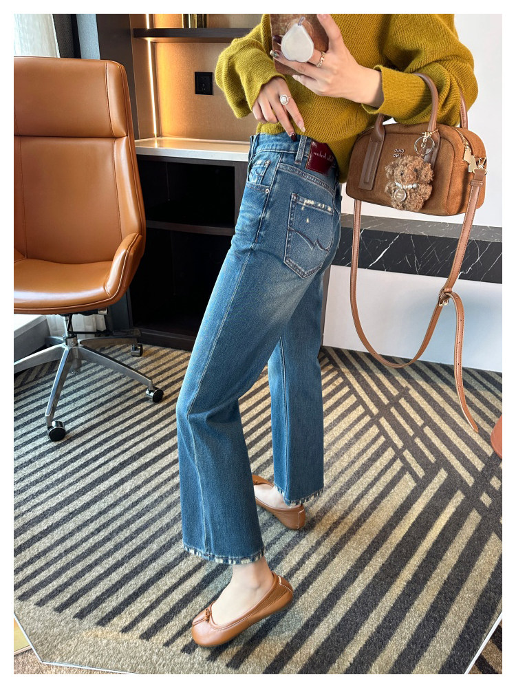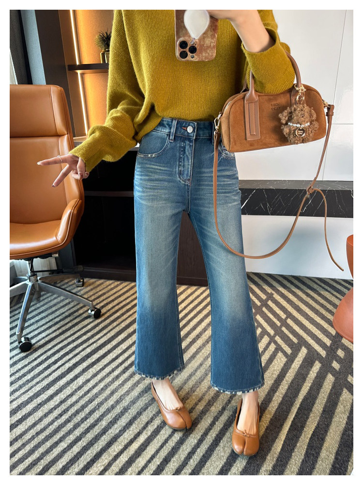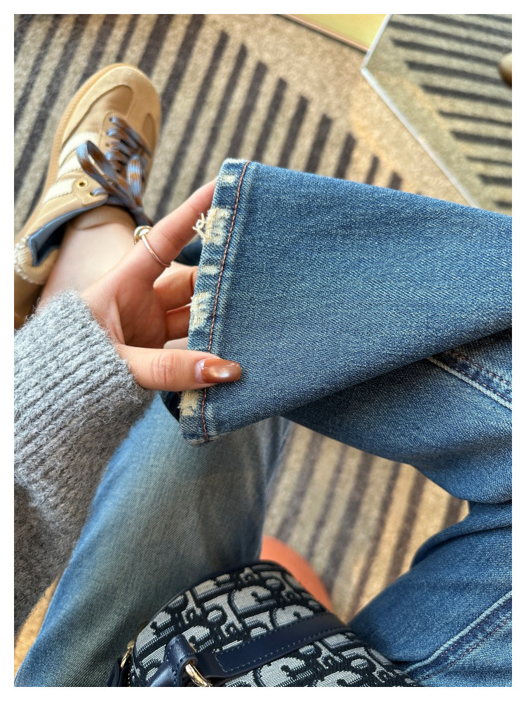 Рваные брюки в стиле ретро!Эти джинсы Bootcut с девятью точками сделают ваши ноги стройнее, когда вы их носите.