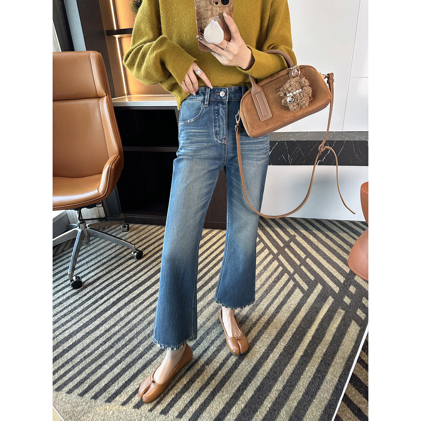 Длина девятиточечных брюк лишь обнажает самые тонкие лодыжки.