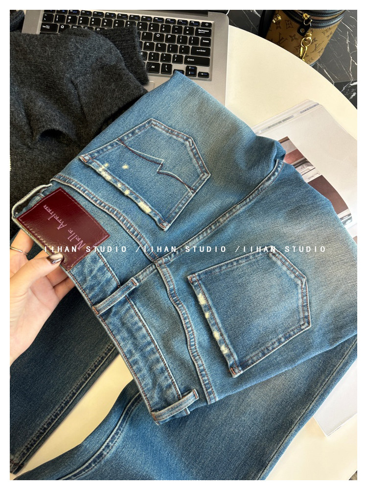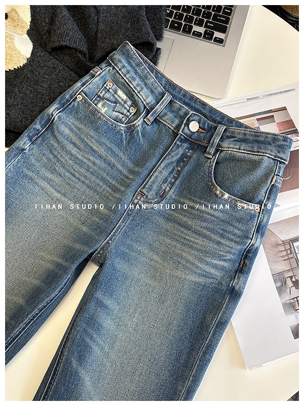 Ретро мегафон, весенние джинсы, приталенные штаны, подходит для подростков