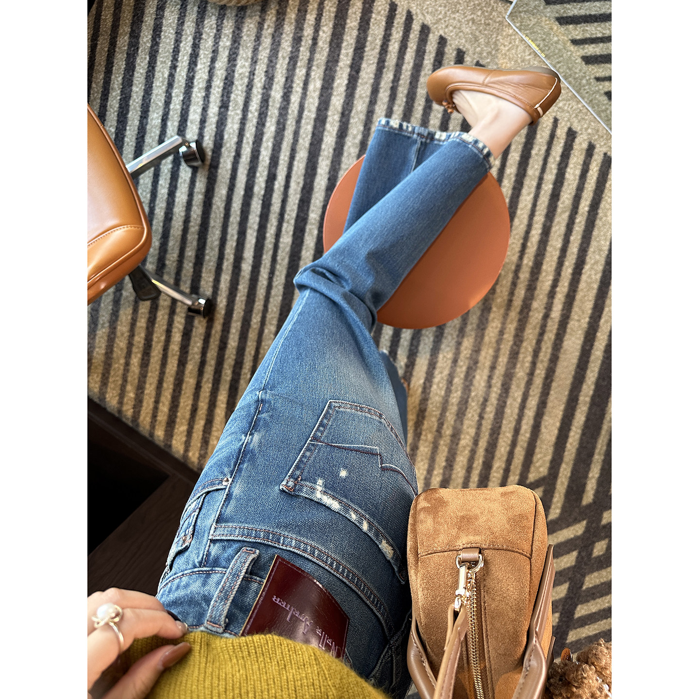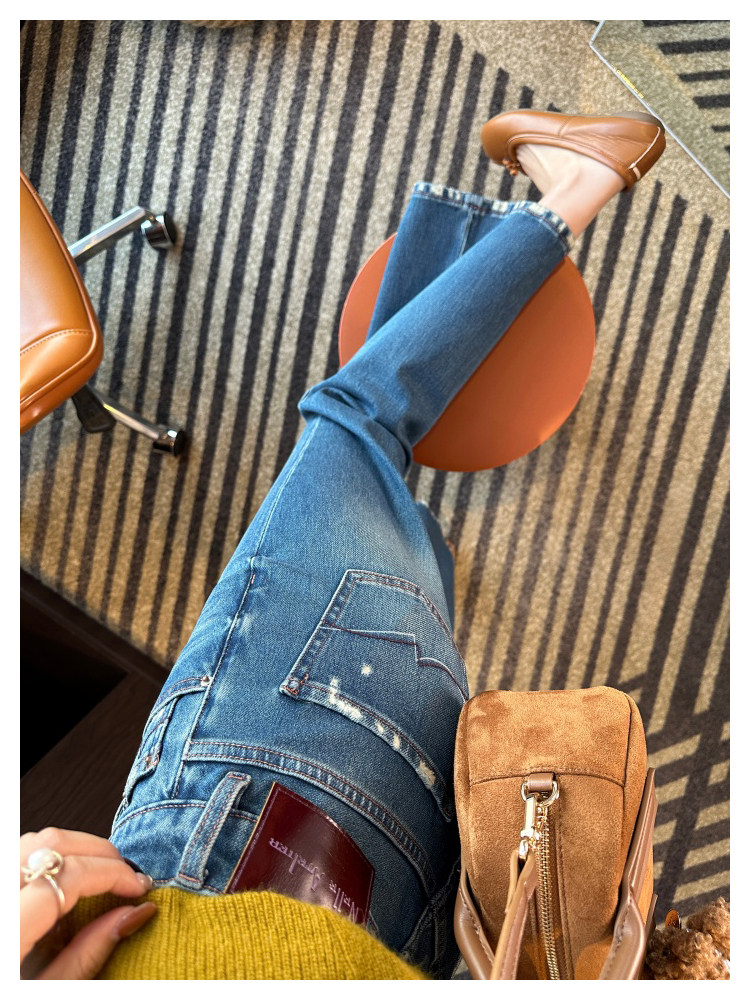 Фигура груша, маленький мужчина с острыми глазами!Эти слегка рваные рваные джинсы с девятью точками,