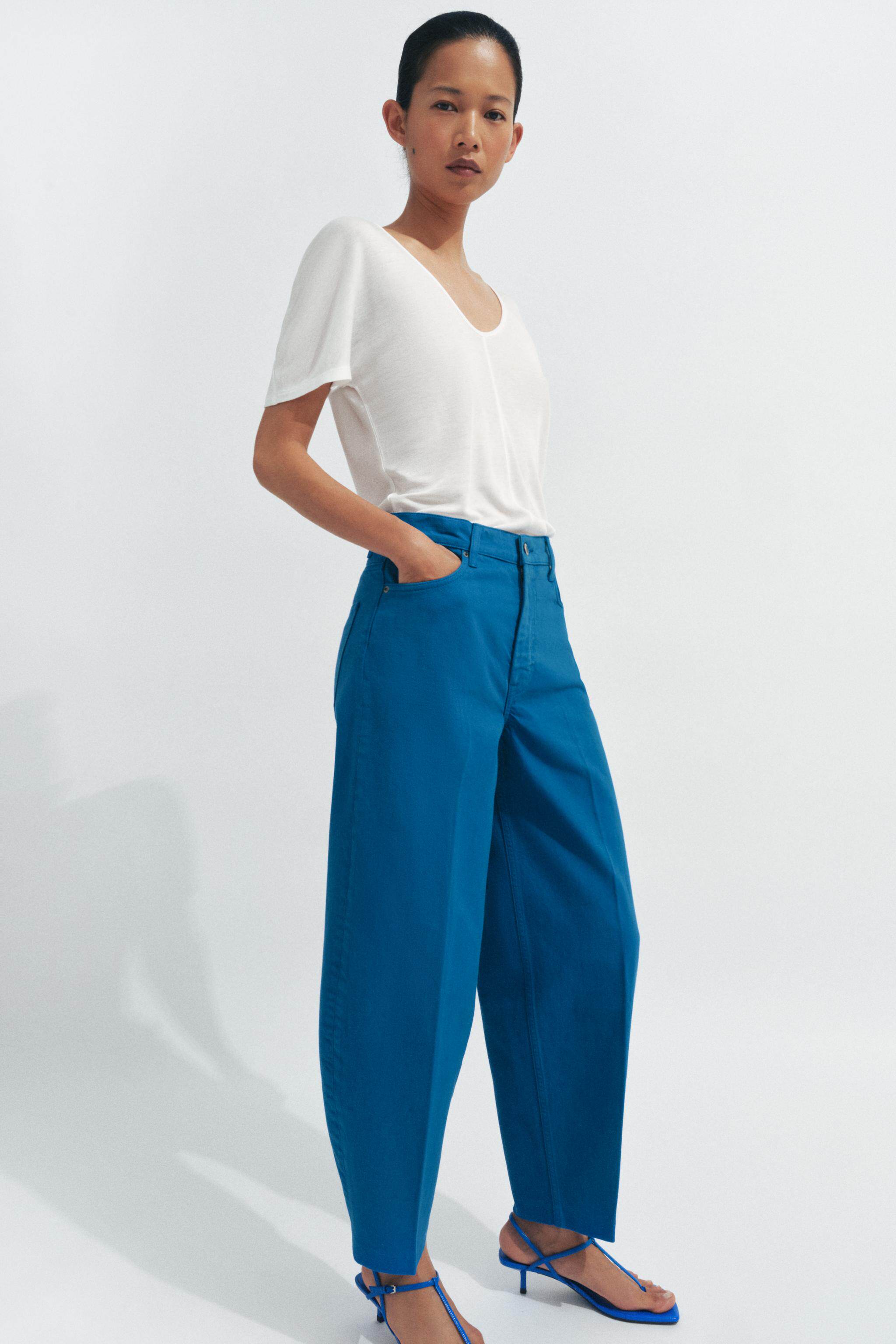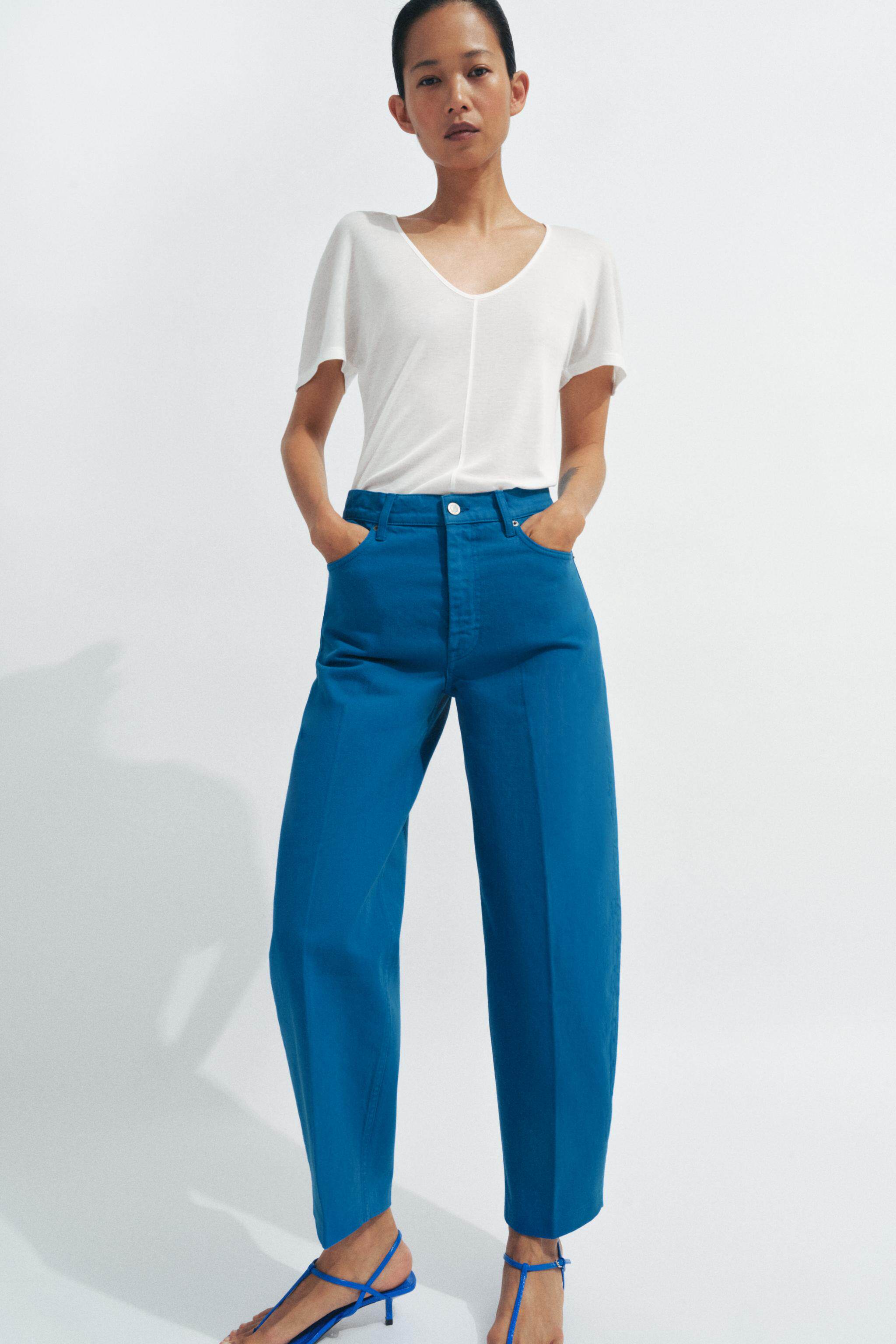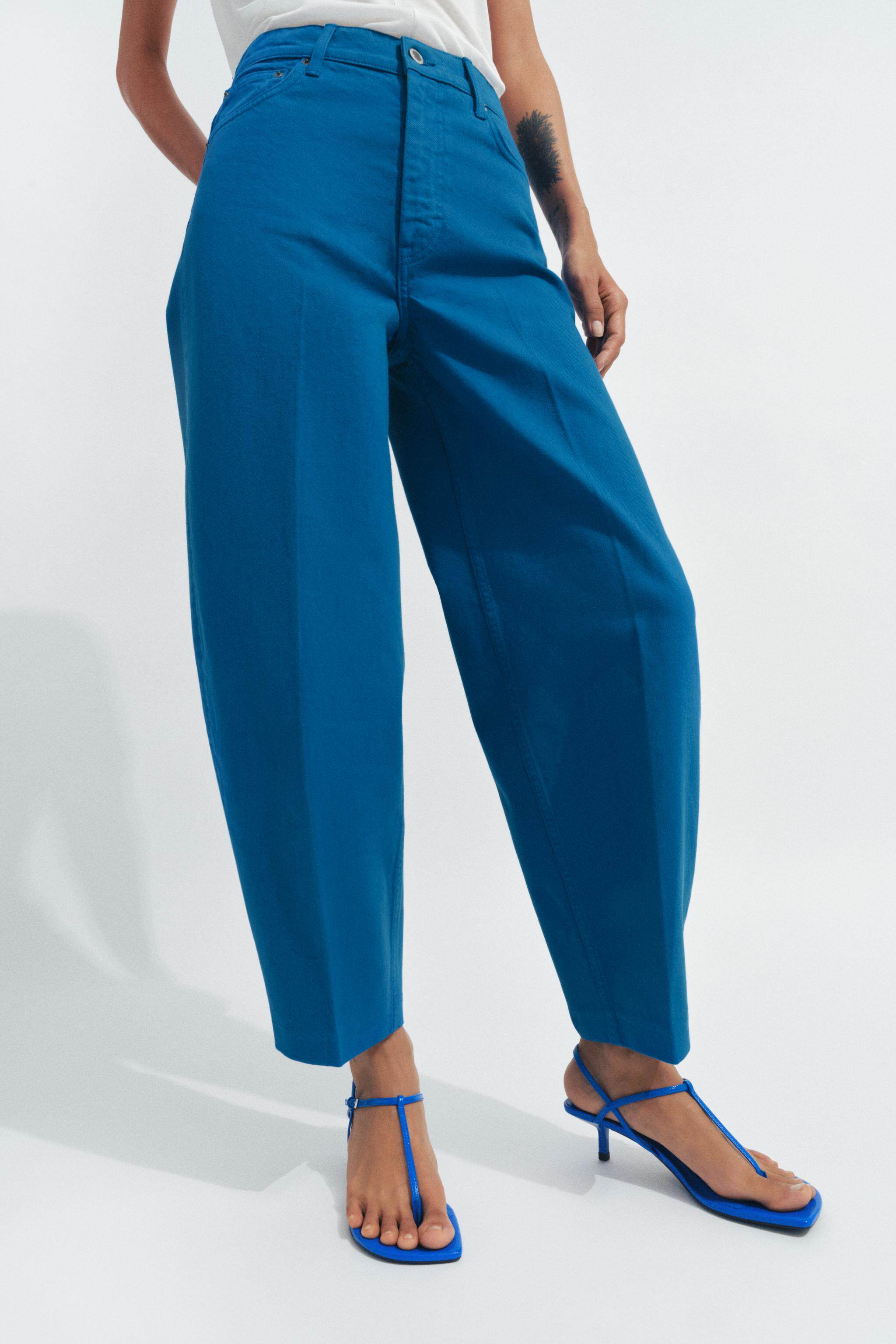 ZARA Новинки весны и лета 2026, женские повседневные зауженные джинсы с высокой талией серии ZW с девятью точками 9632079