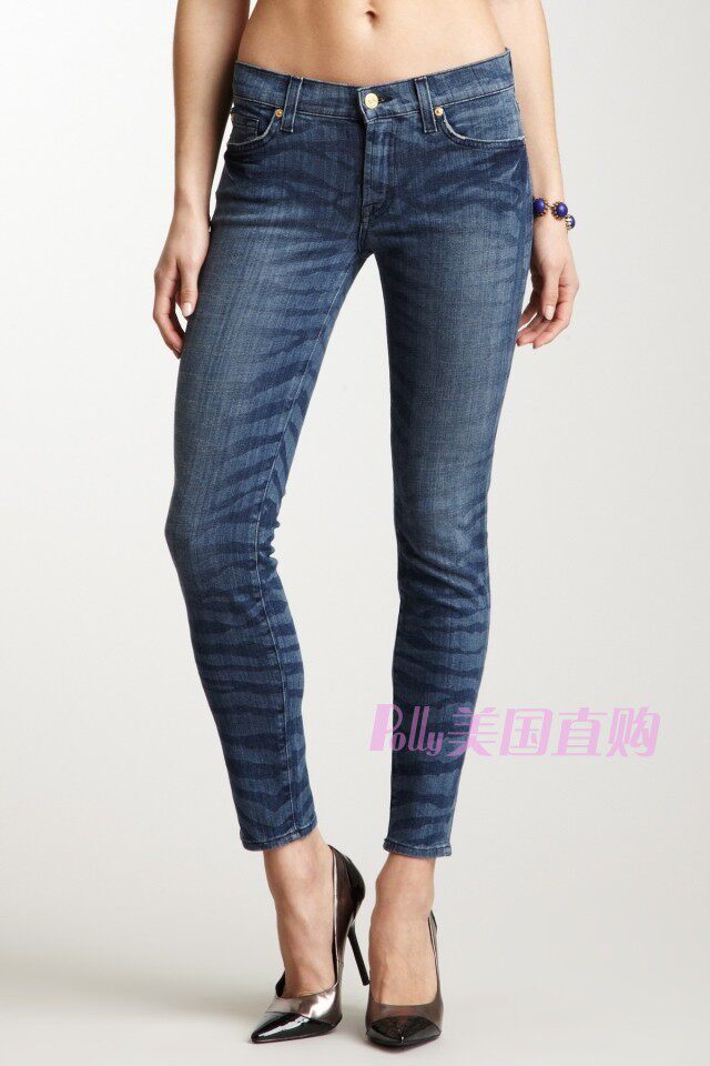 7 Для всех человечества женского синего шлифования белые брюки Джинсы Американский домашний место