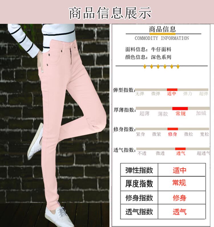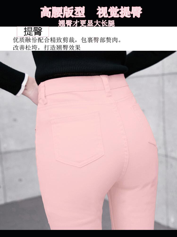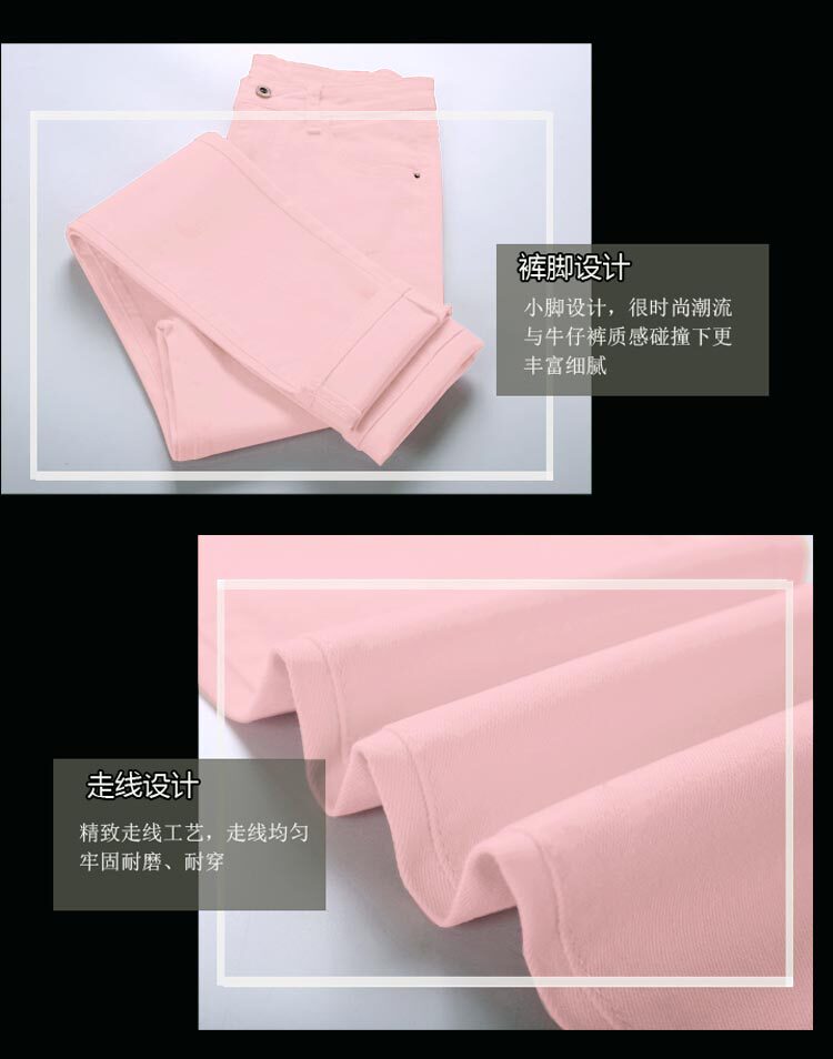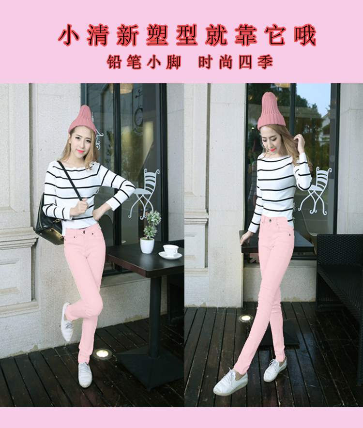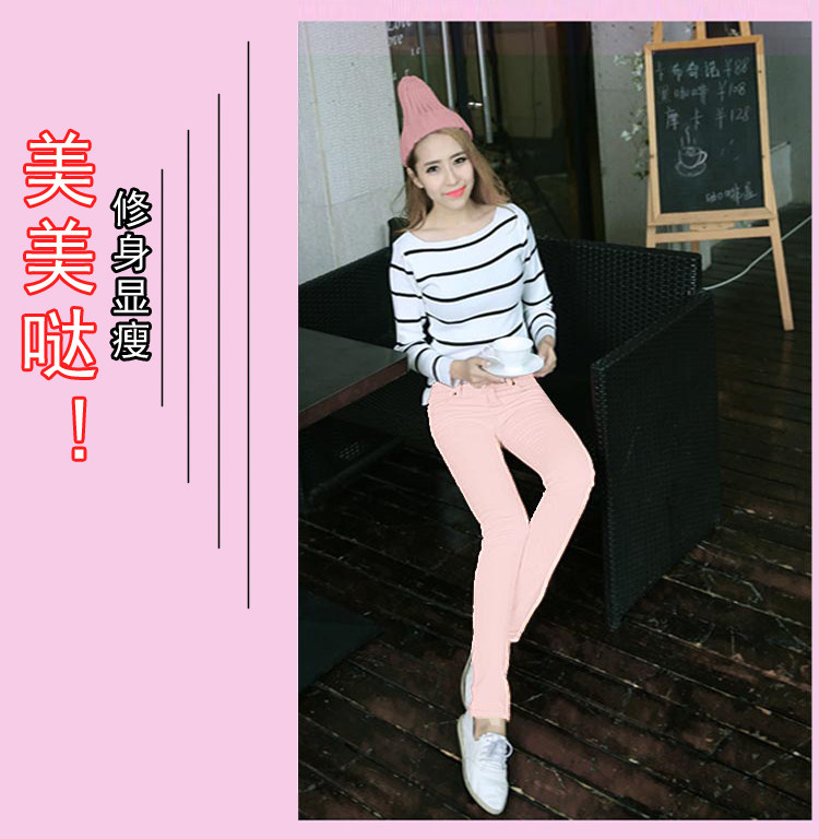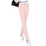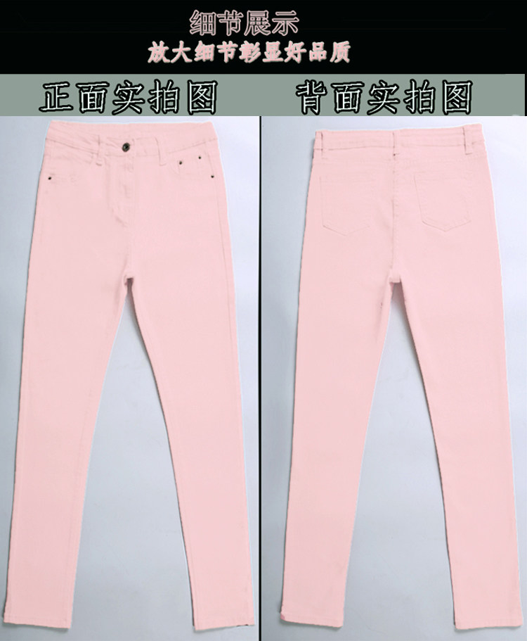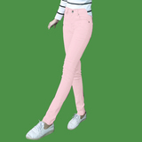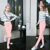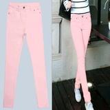 Джинсы, розовый эластичный карандаш, штаны, в корейском стиле, со снежинками