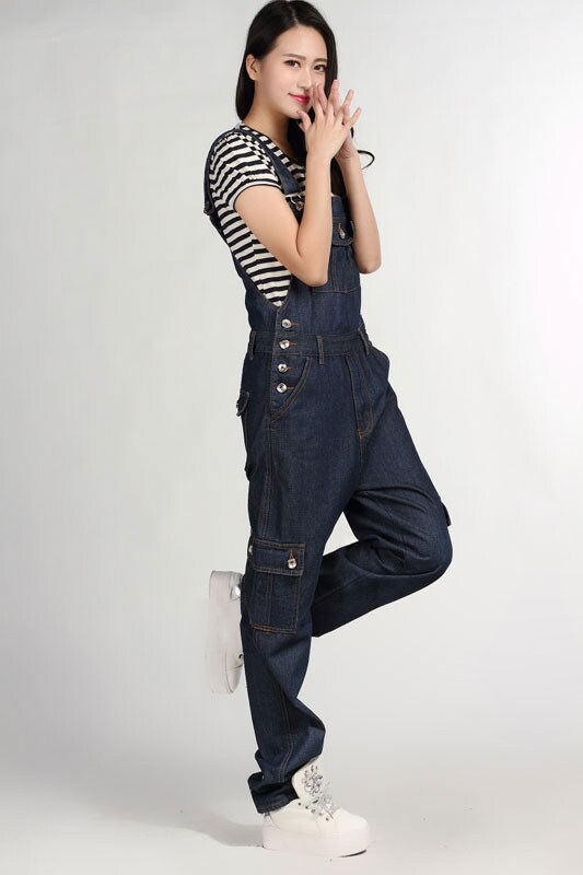 Весенний джинсовый комбинезон, штаны, 2023, в корейском стиле, свободный крой, эффект подтяжки, большой размер