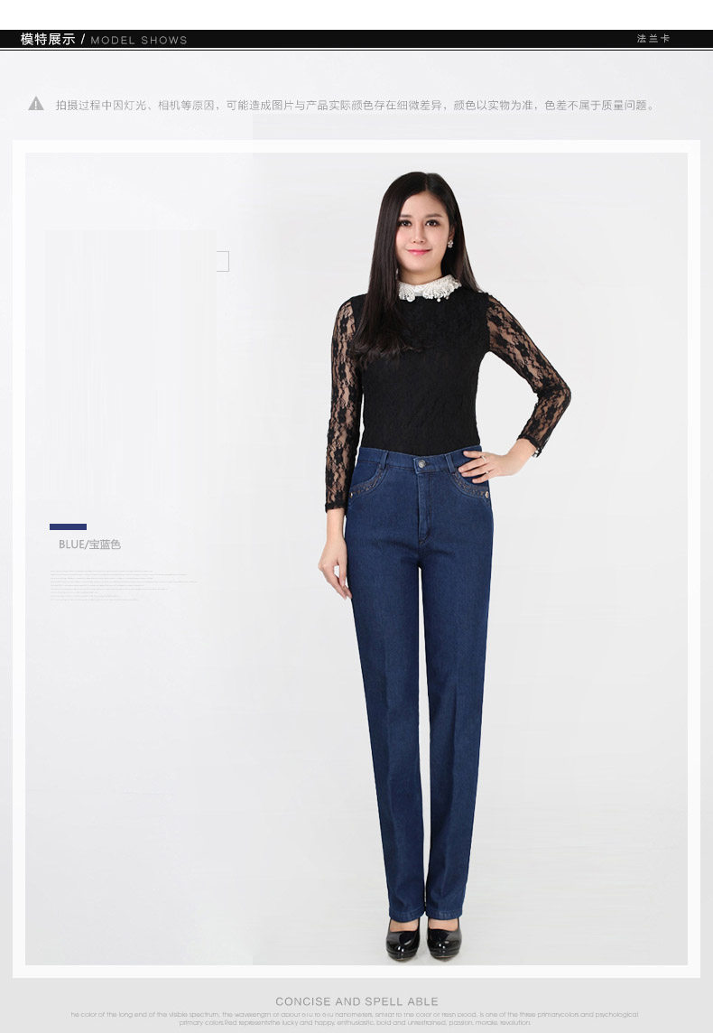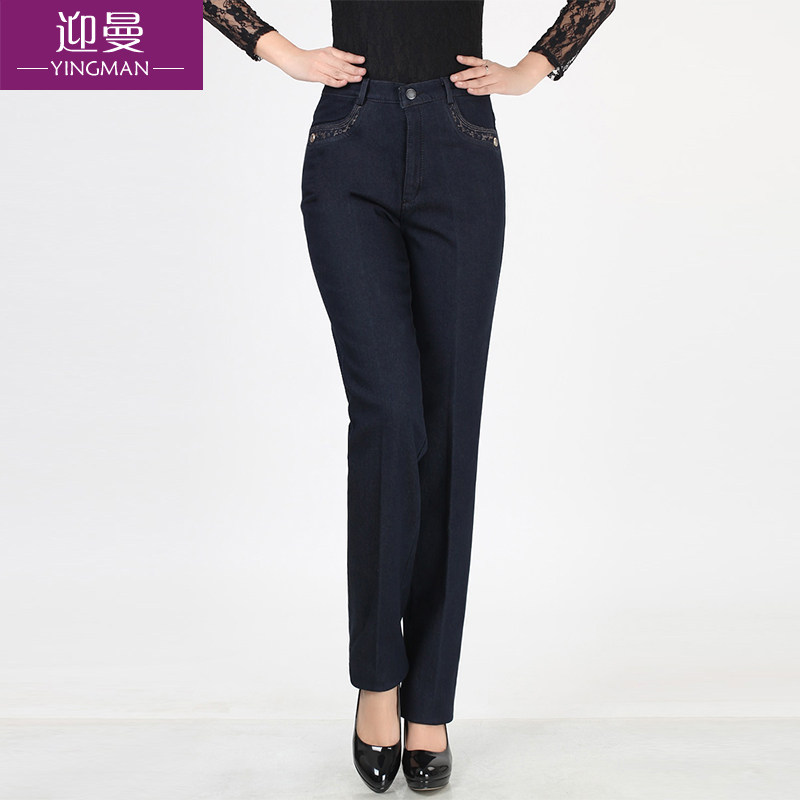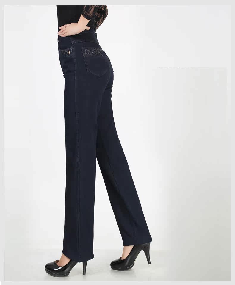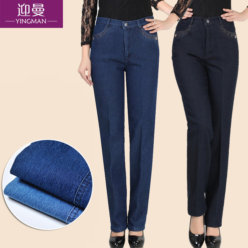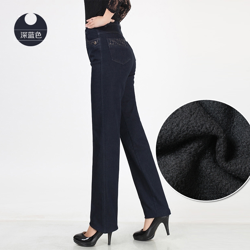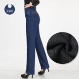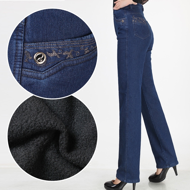 Утепленные джинсы, штаны, для среднего возраста, большой размер, увеличенная толщина, высокая талия