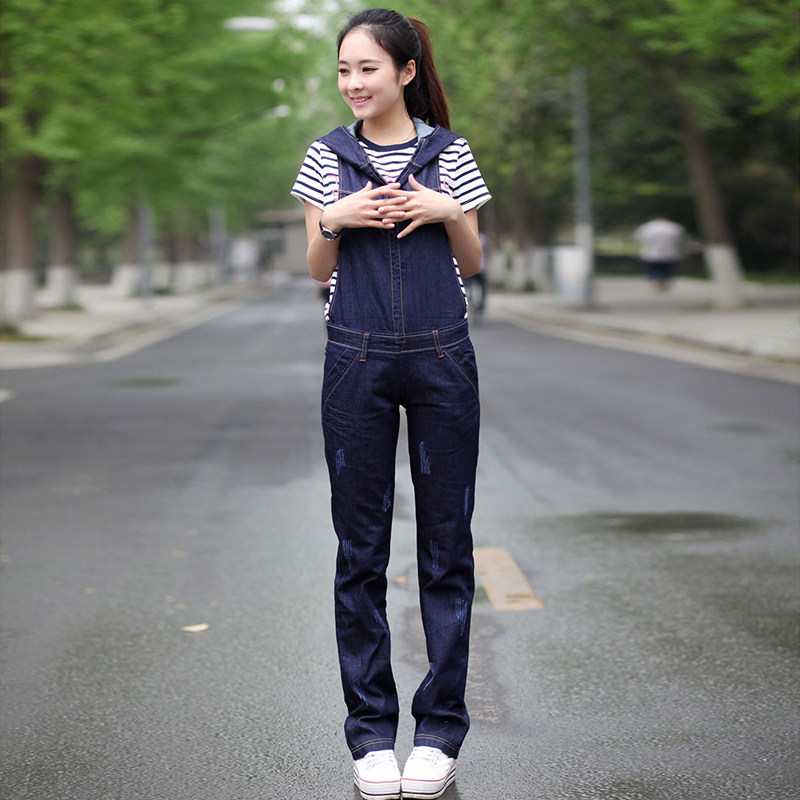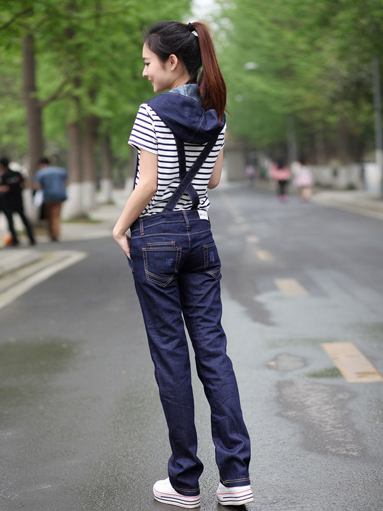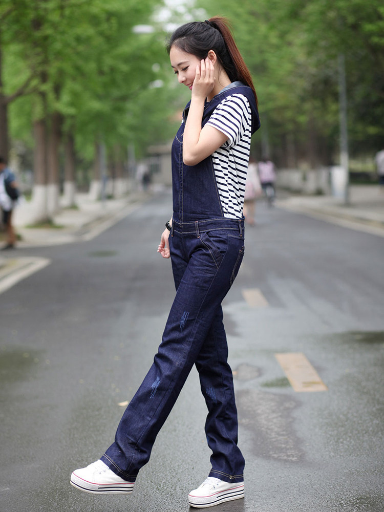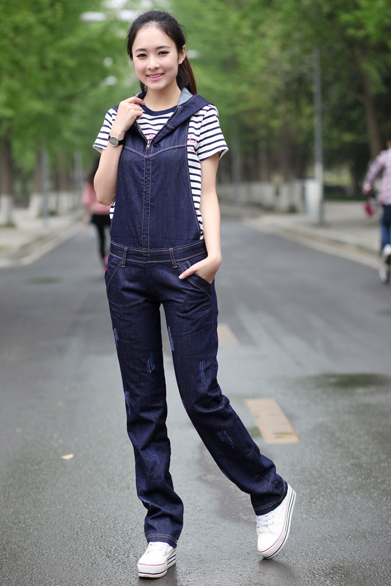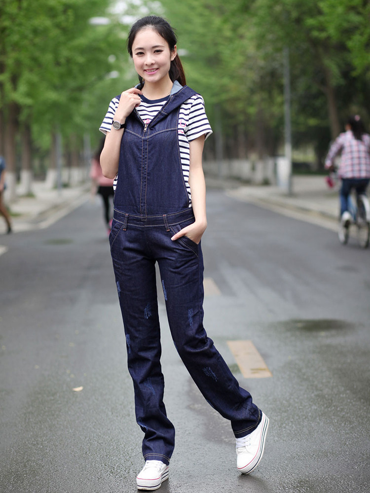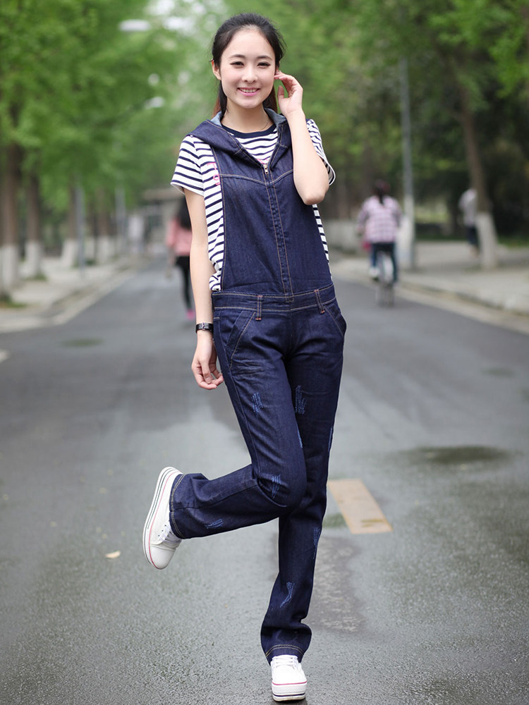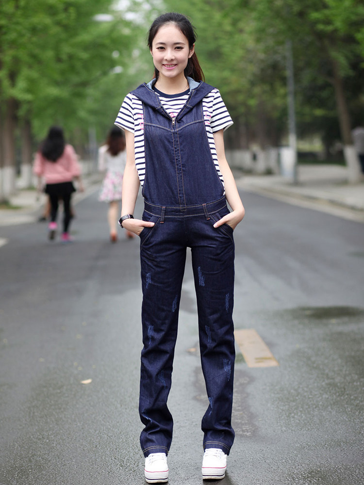 Подтяжки с капюшоном, штаны, джинсовый весенний комбинезон, коллекция 2021, в корейском стиле, оверсайз