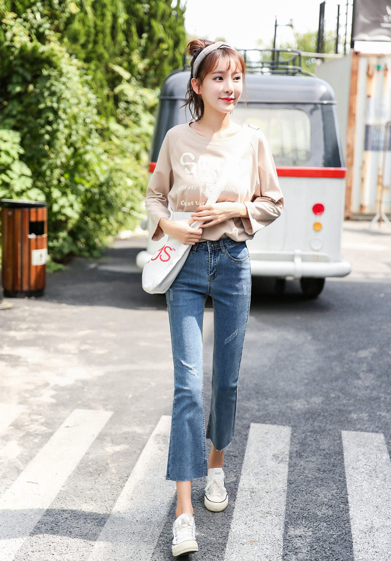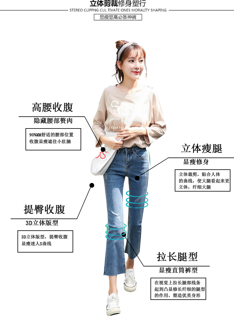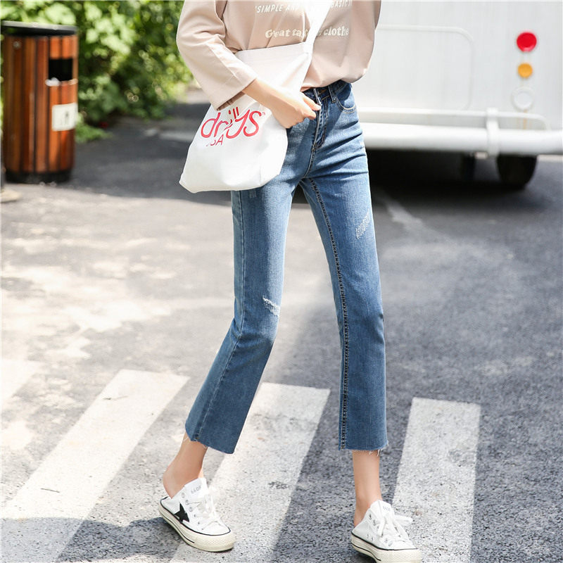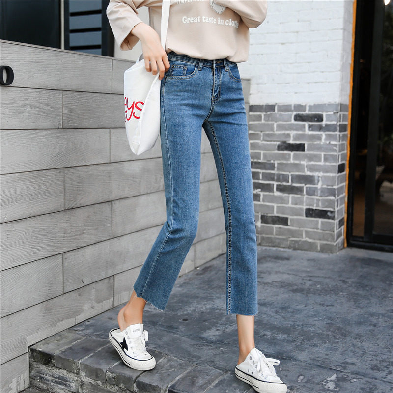 Весенний приталенный мегафон, джинсы, эластичные штаны, 2019, в корейском стиле, высокая талия, свободный крой