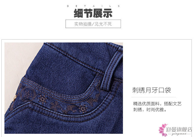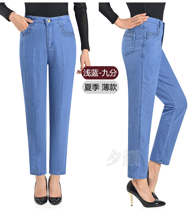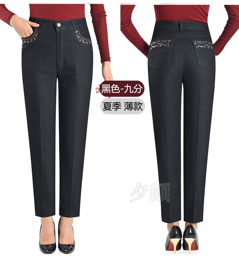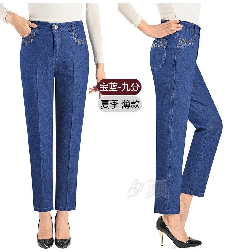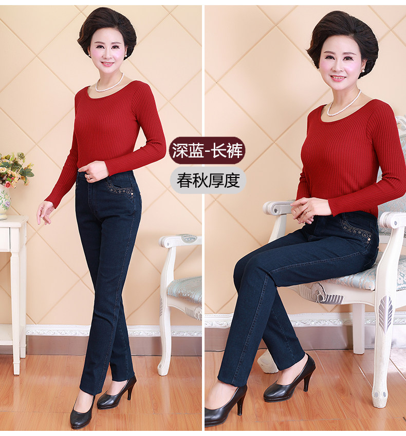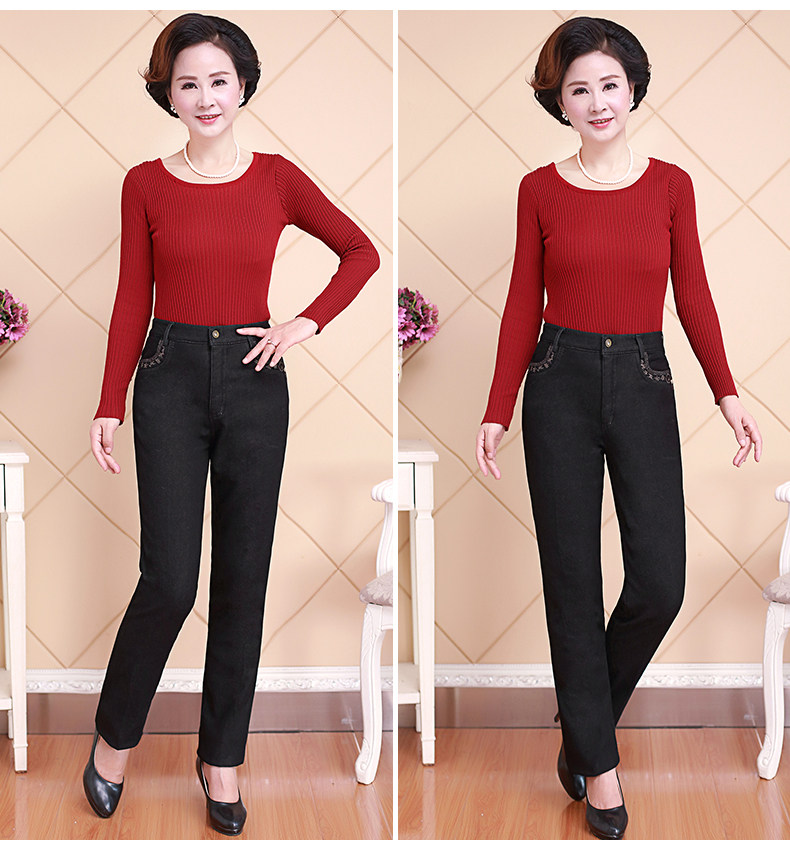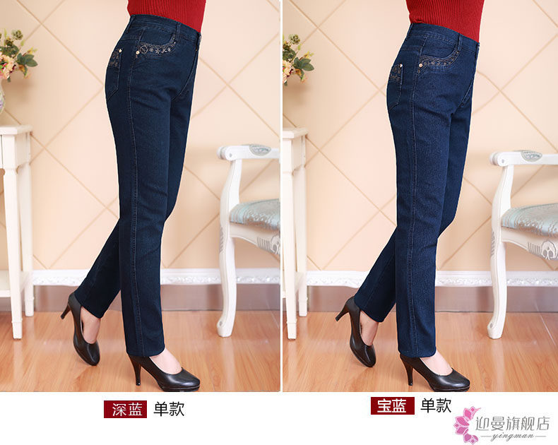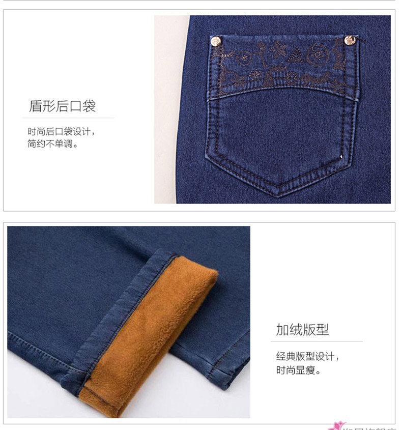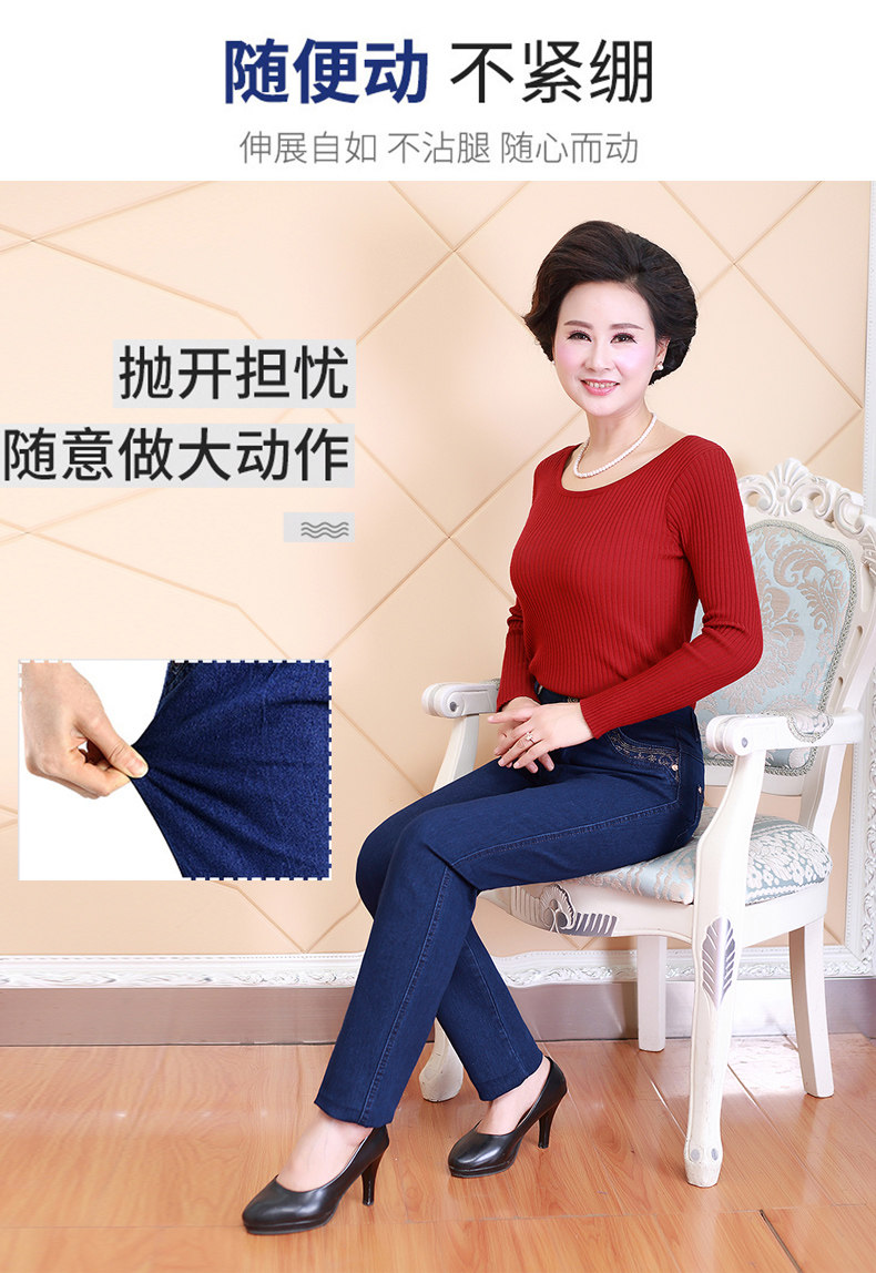 Демисезонные джинсы, флисовые эластичные штаны, для среднего возраста, высокая талия, размер, свободный прямой крой, увеличенная толщина