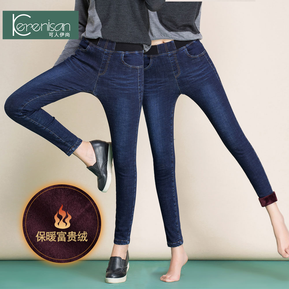 Флисовые джинсы с начесом, демисезонные штаны, карандаш, 2020, новая коллекция, эластичная талия, большой размер