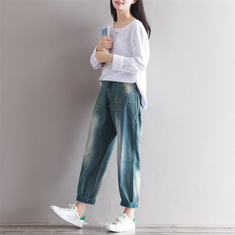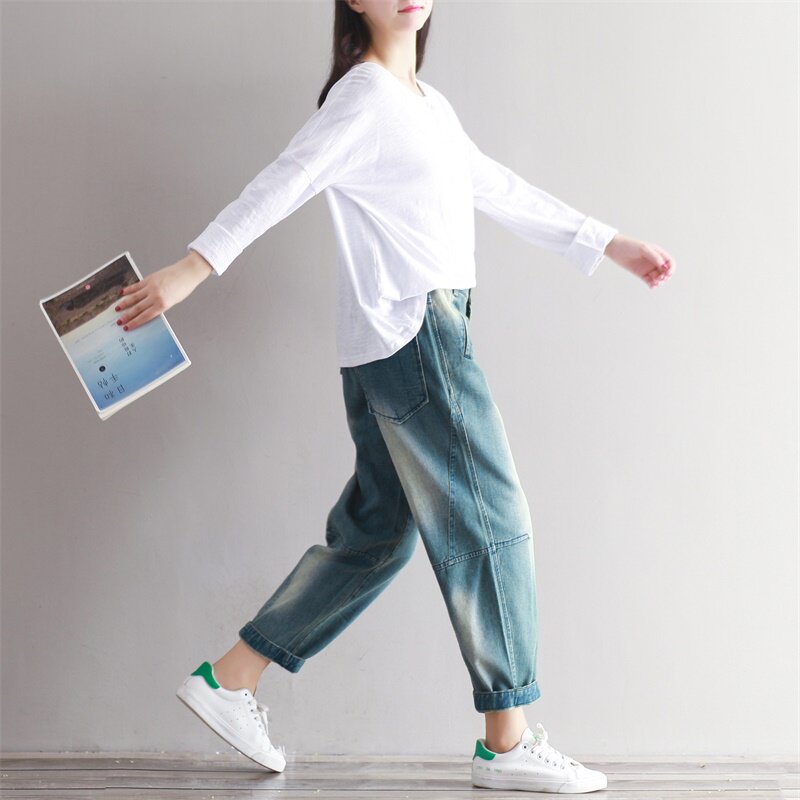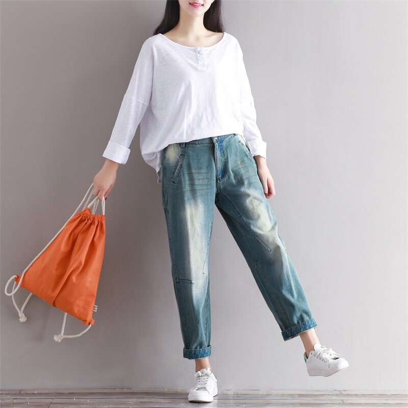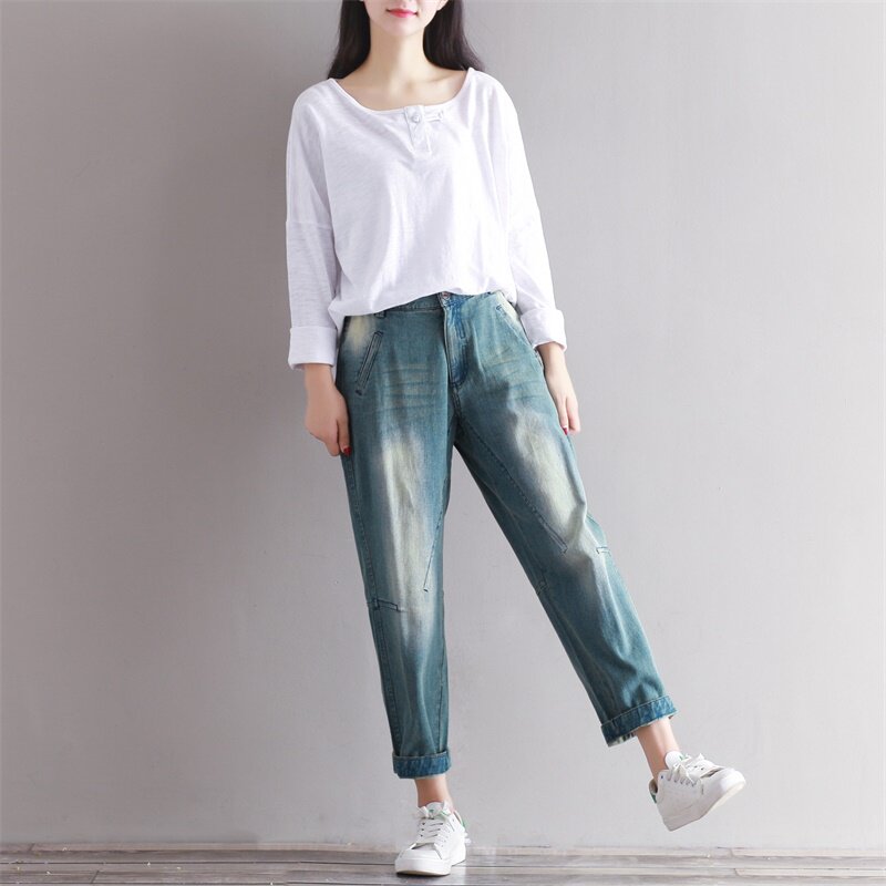 Весенние джинсовые штаны для отдыха, большой размер, свободный крой