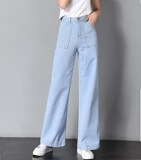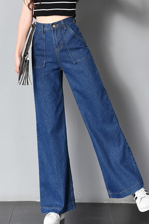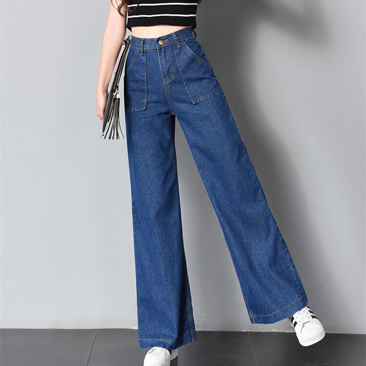 Осенние джинсы, штаны, штаны-клёш, высокая талия, свободный крой