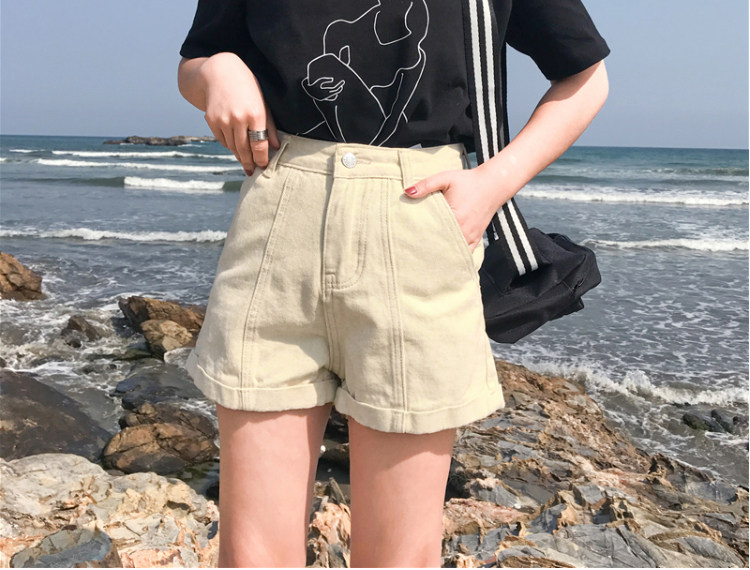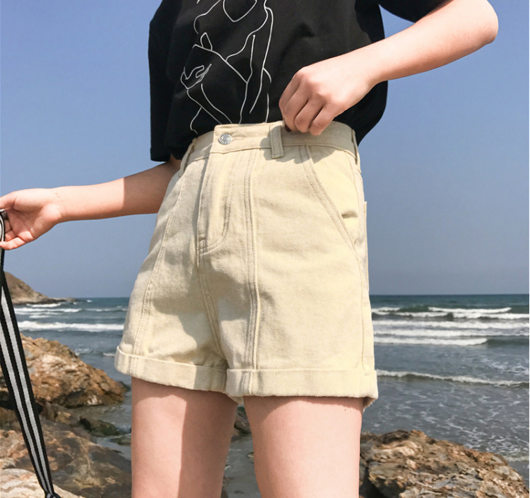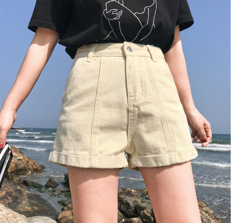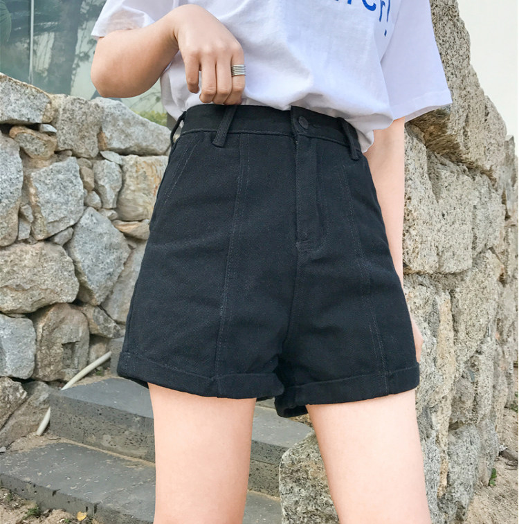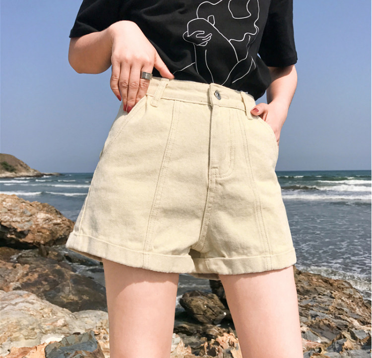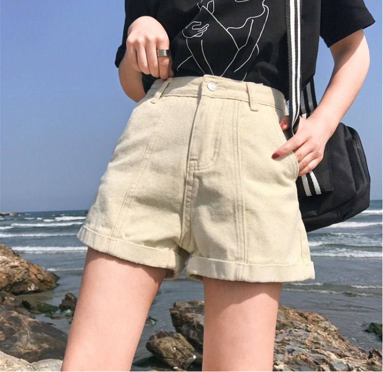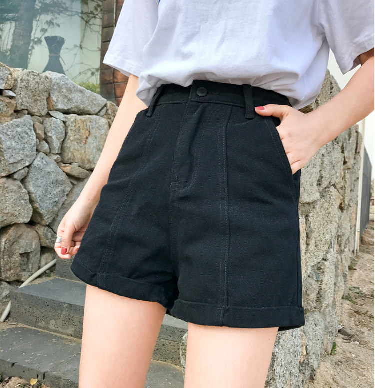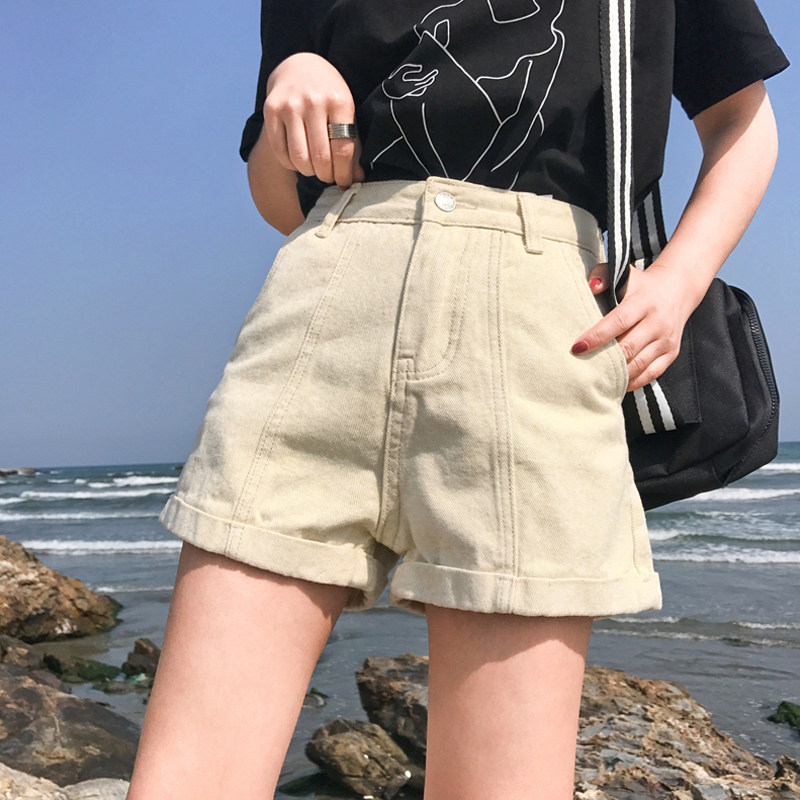 Летние ретро шорты, штаны, джинсы, в корейском стиле, свободный крой, по фигуре, высокая талия