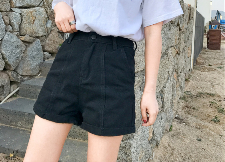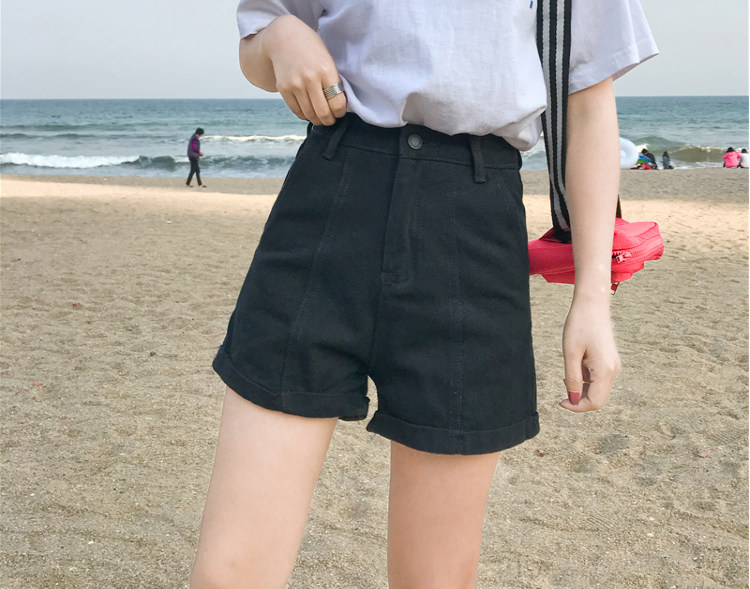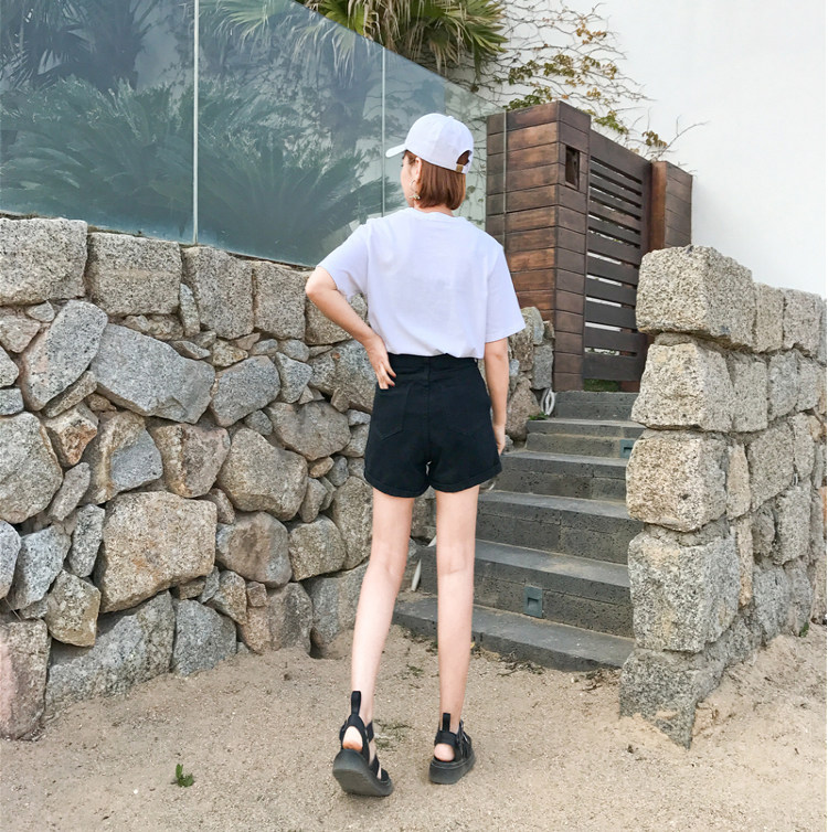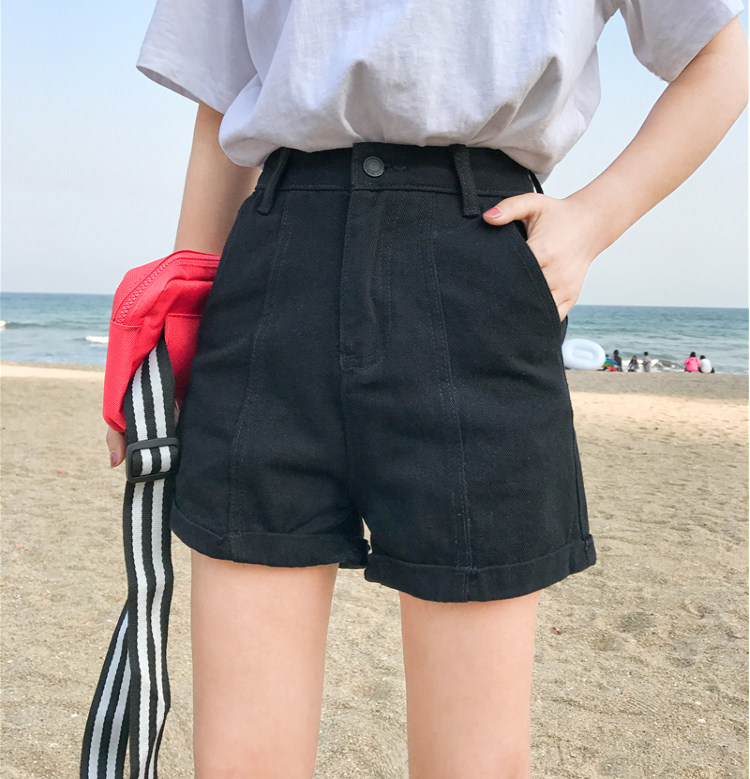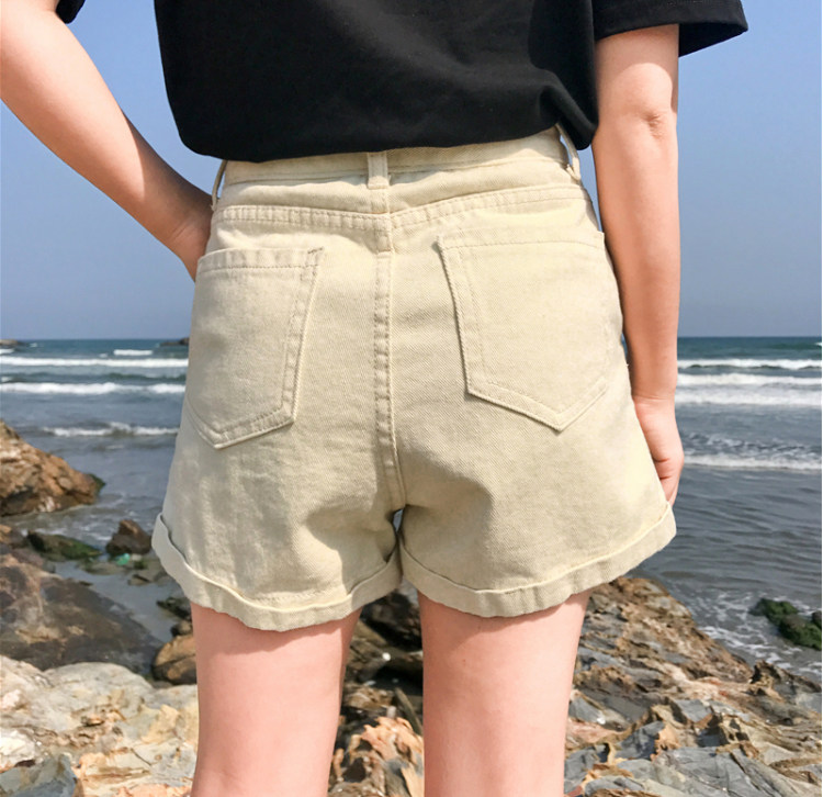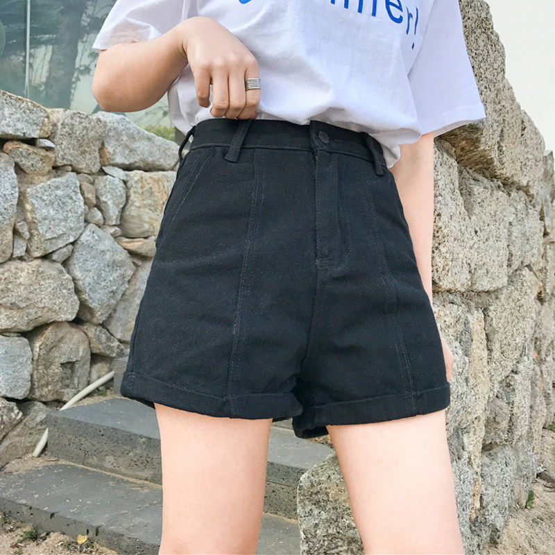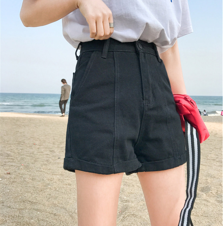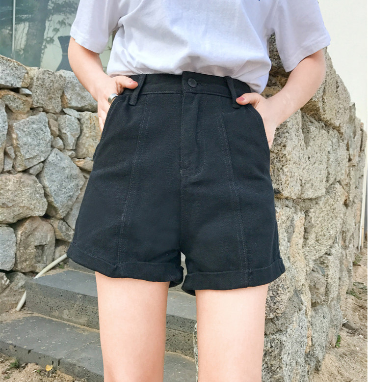 Летние ретро шорты, штаны, джинсы, в корейском стиле, свободный крой, по фигуре, высокая талия