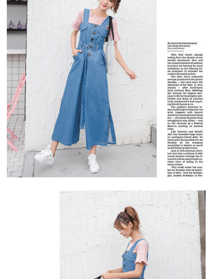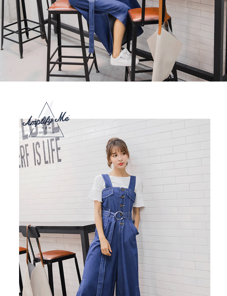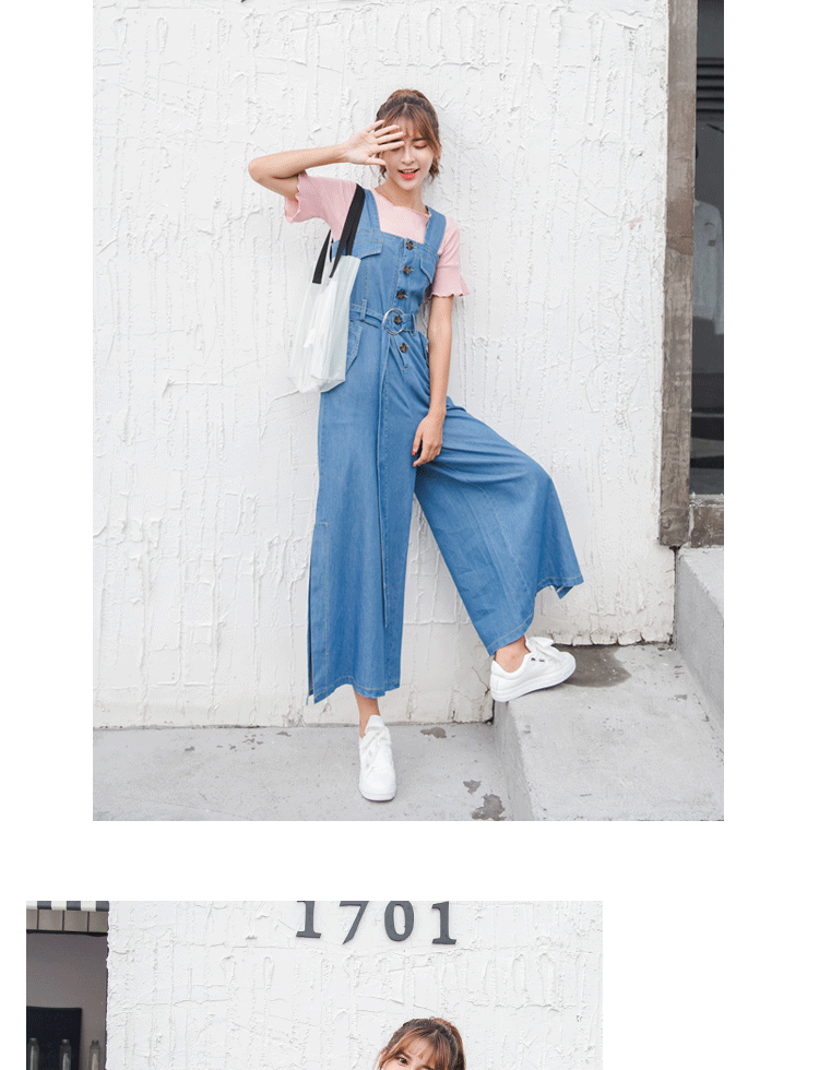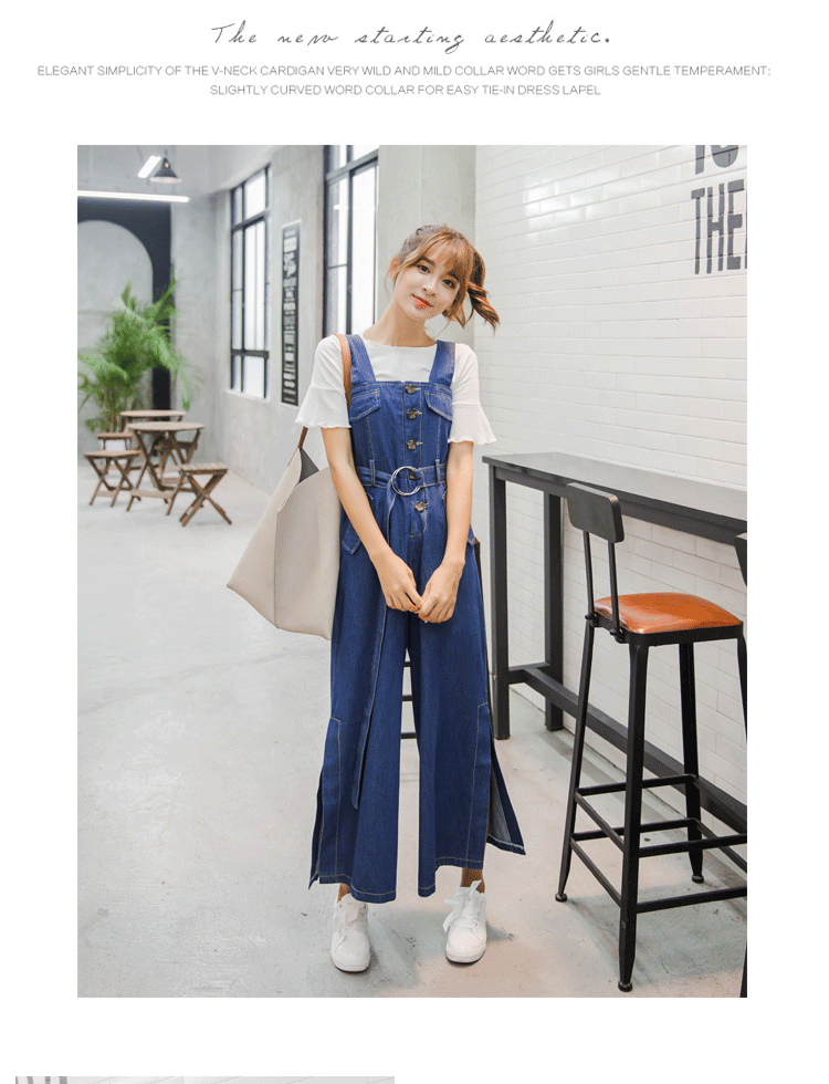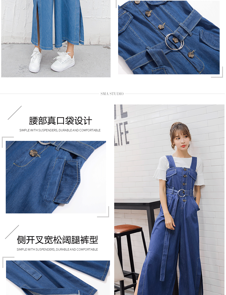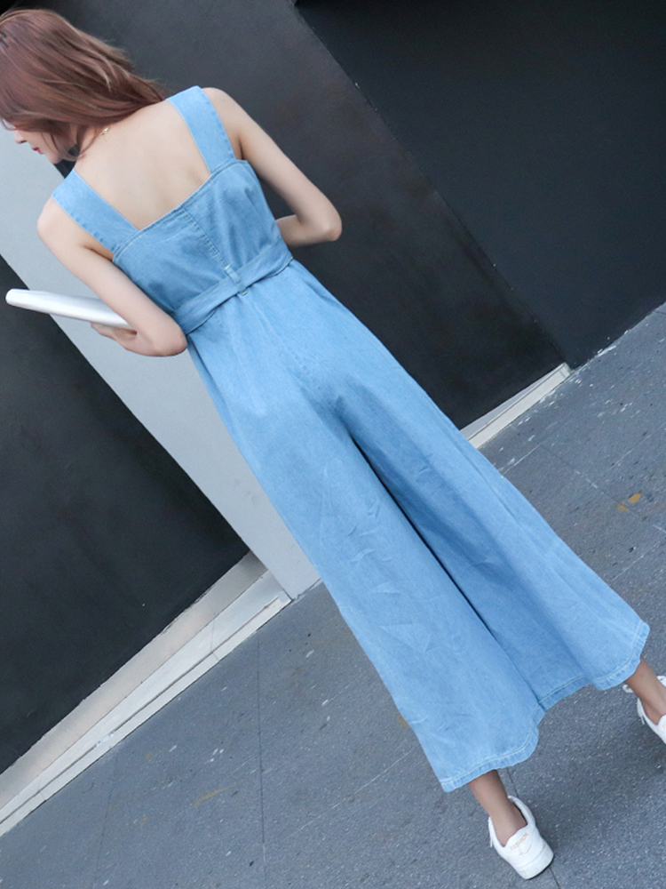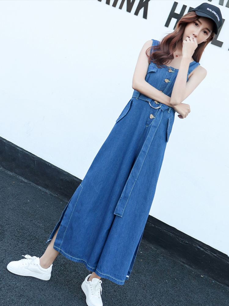 Комбинезон, летние джинсовые штаны, в корейском стиле, подходит для подростков, высокая талия