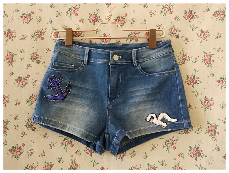 自然元素 Аутентичный летний стиль "Seagull*Seagull" Джинсы Seagull Женские шорты xnk21