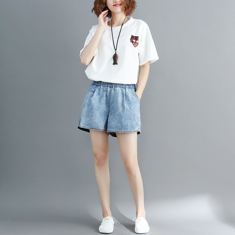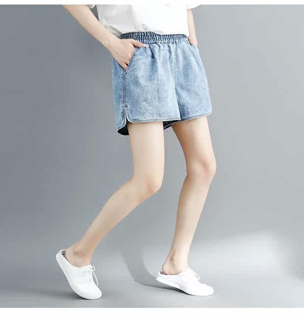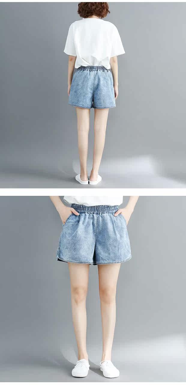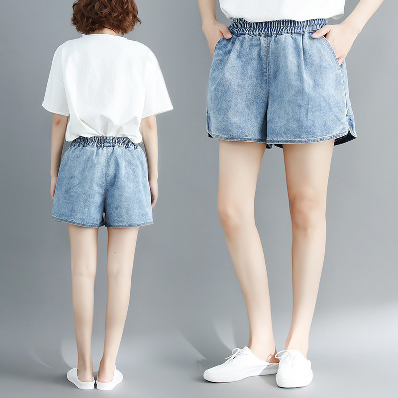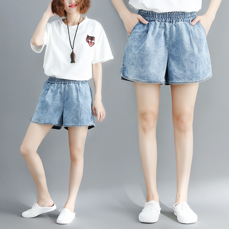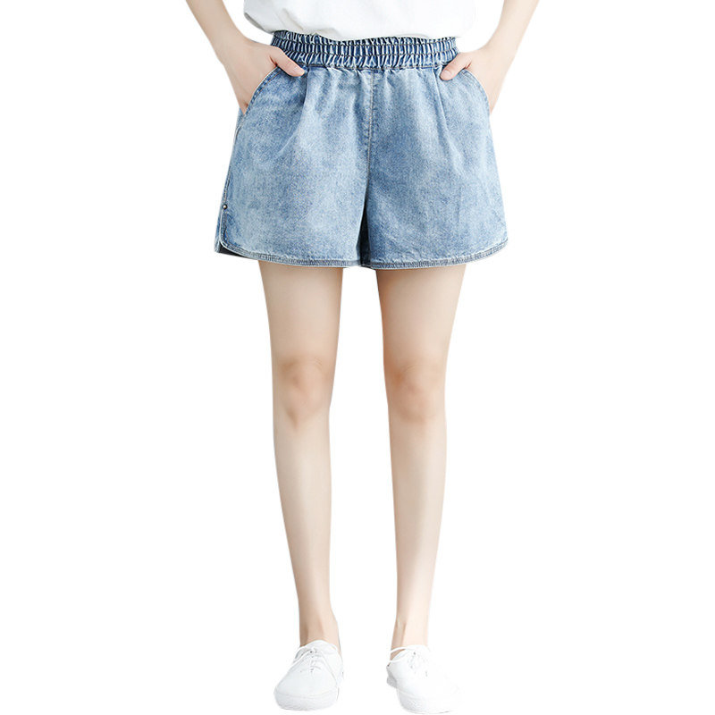 Летние джинсовые штаны, шорты, большой размер, эластичная талия, по фигуре, А-силуэт