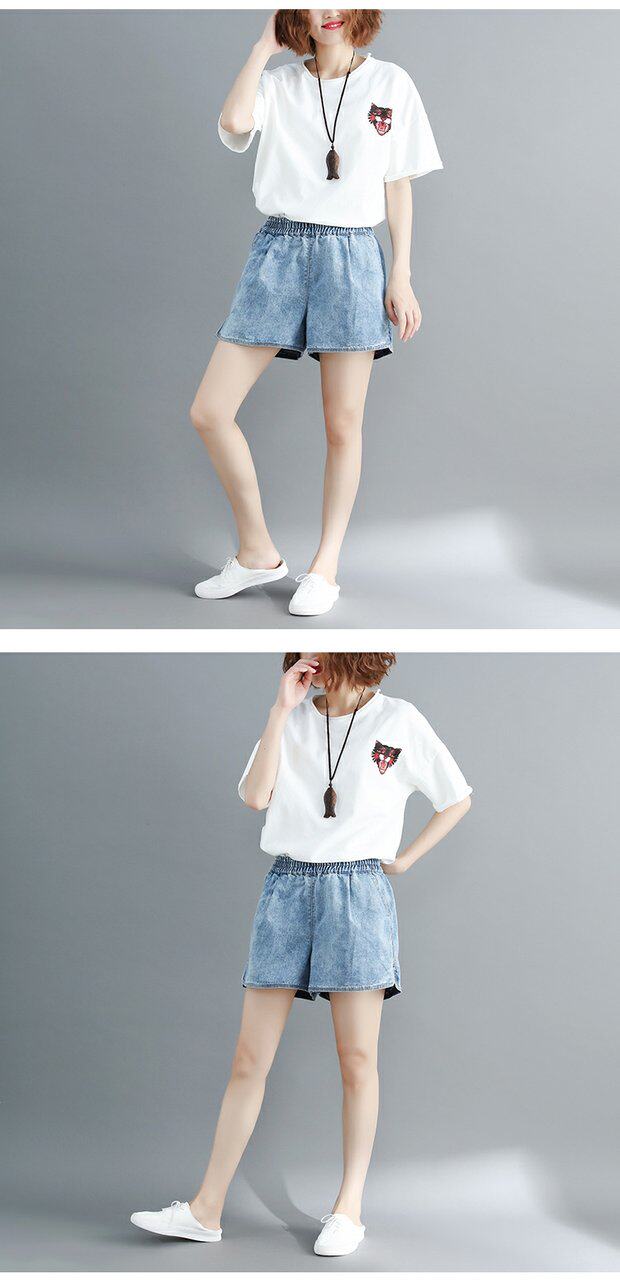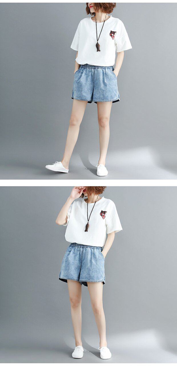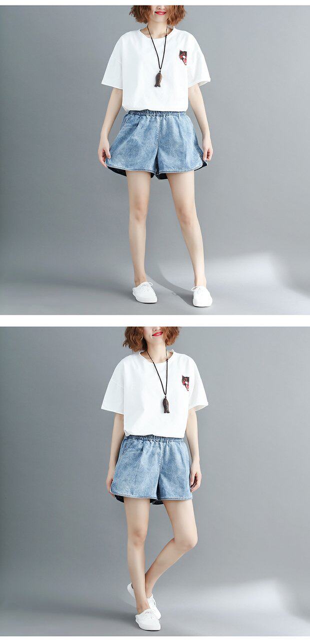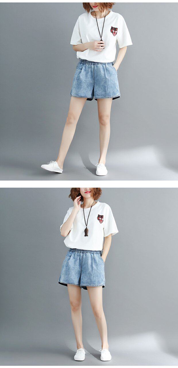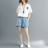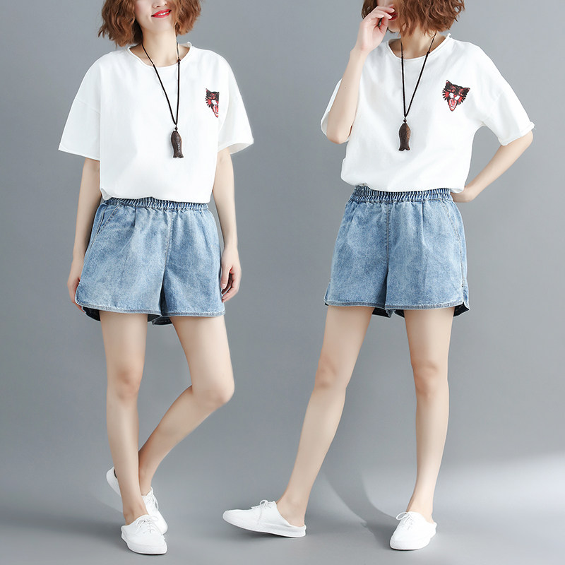 Летние джинсовые штаны, шорты, большой размер, эластичная талия, по фигуре, А-силуэт