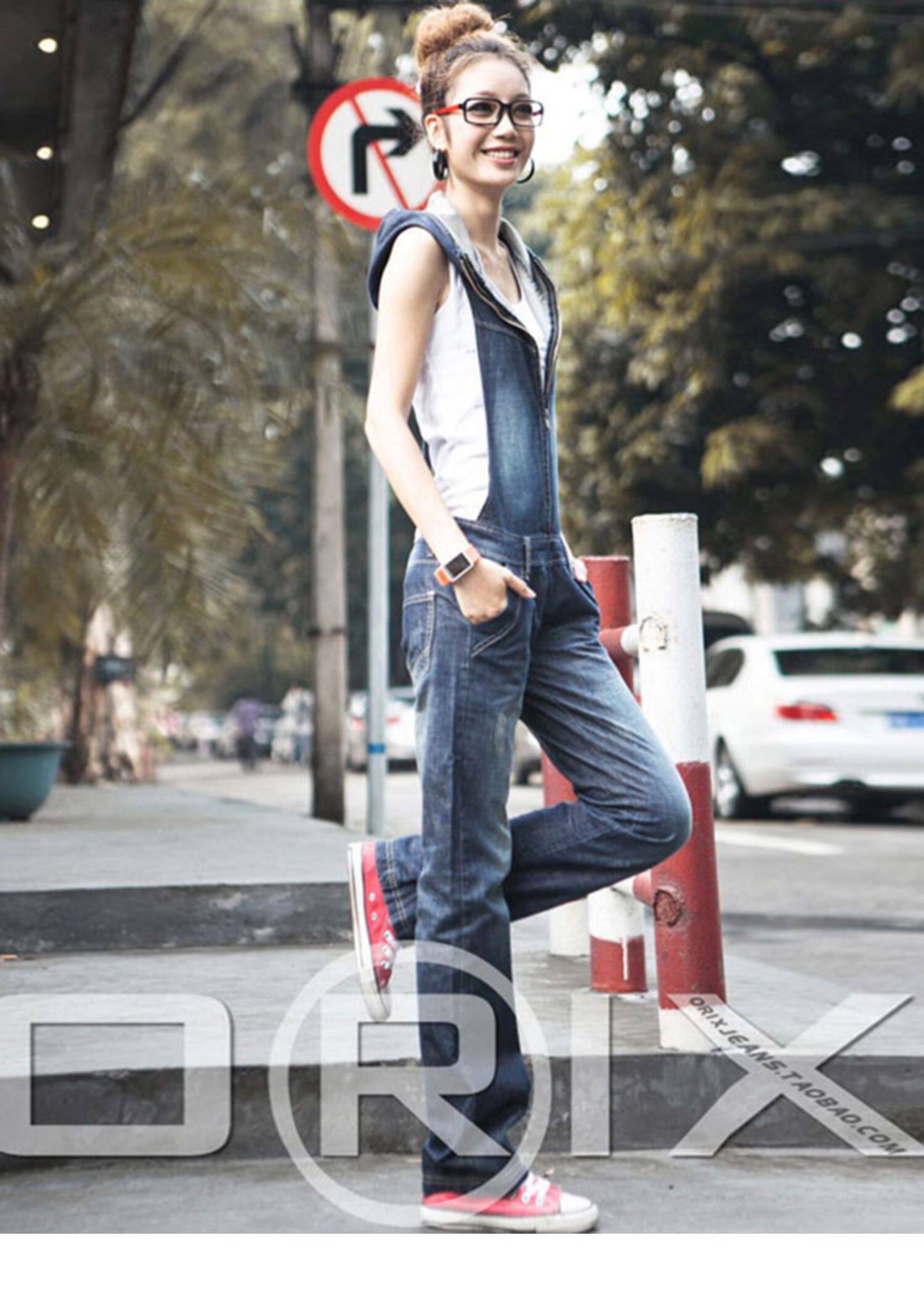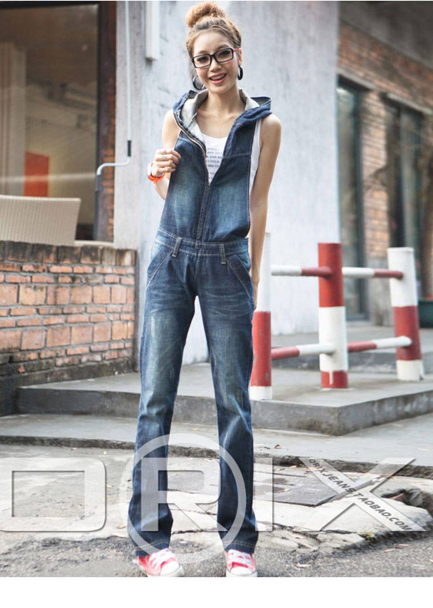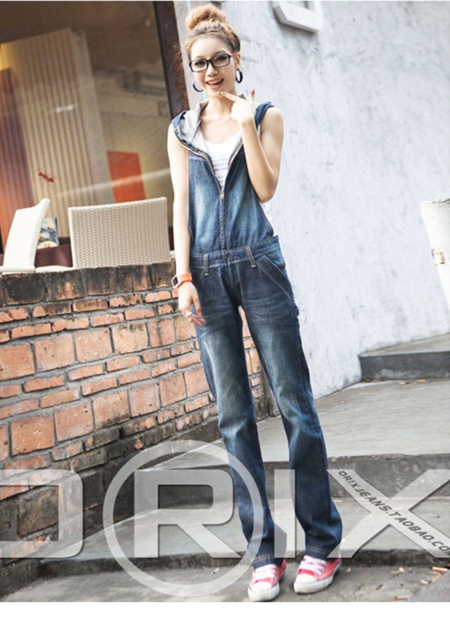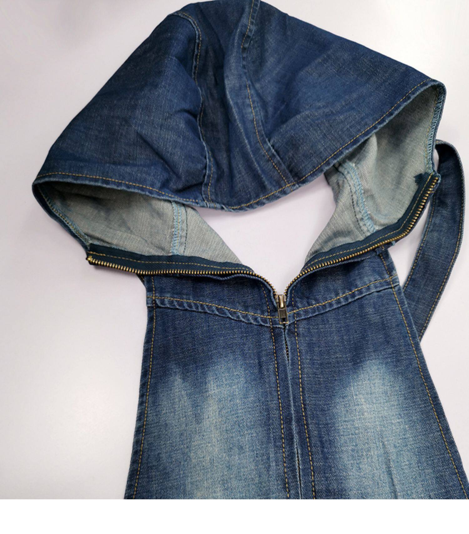 Универсальный ретро джинсовый комбинезон, весенние модные штаны с капюшоном, в корейском стиле