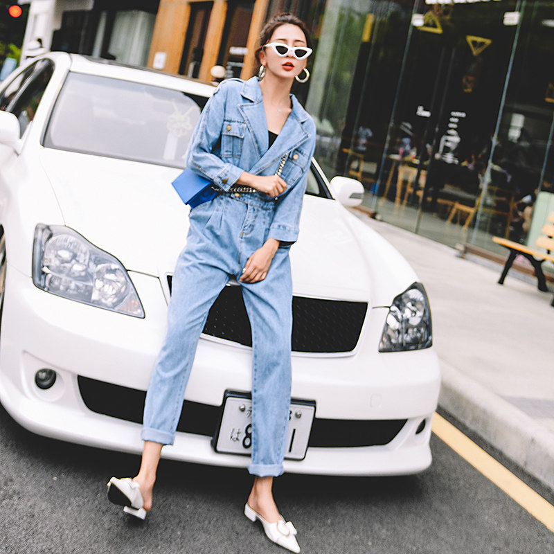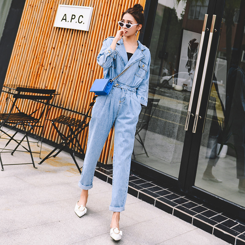 Комбинезон, модные весенние штаны, в корейском стиле, высокая талия, свободный крой