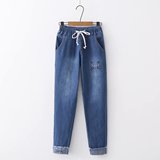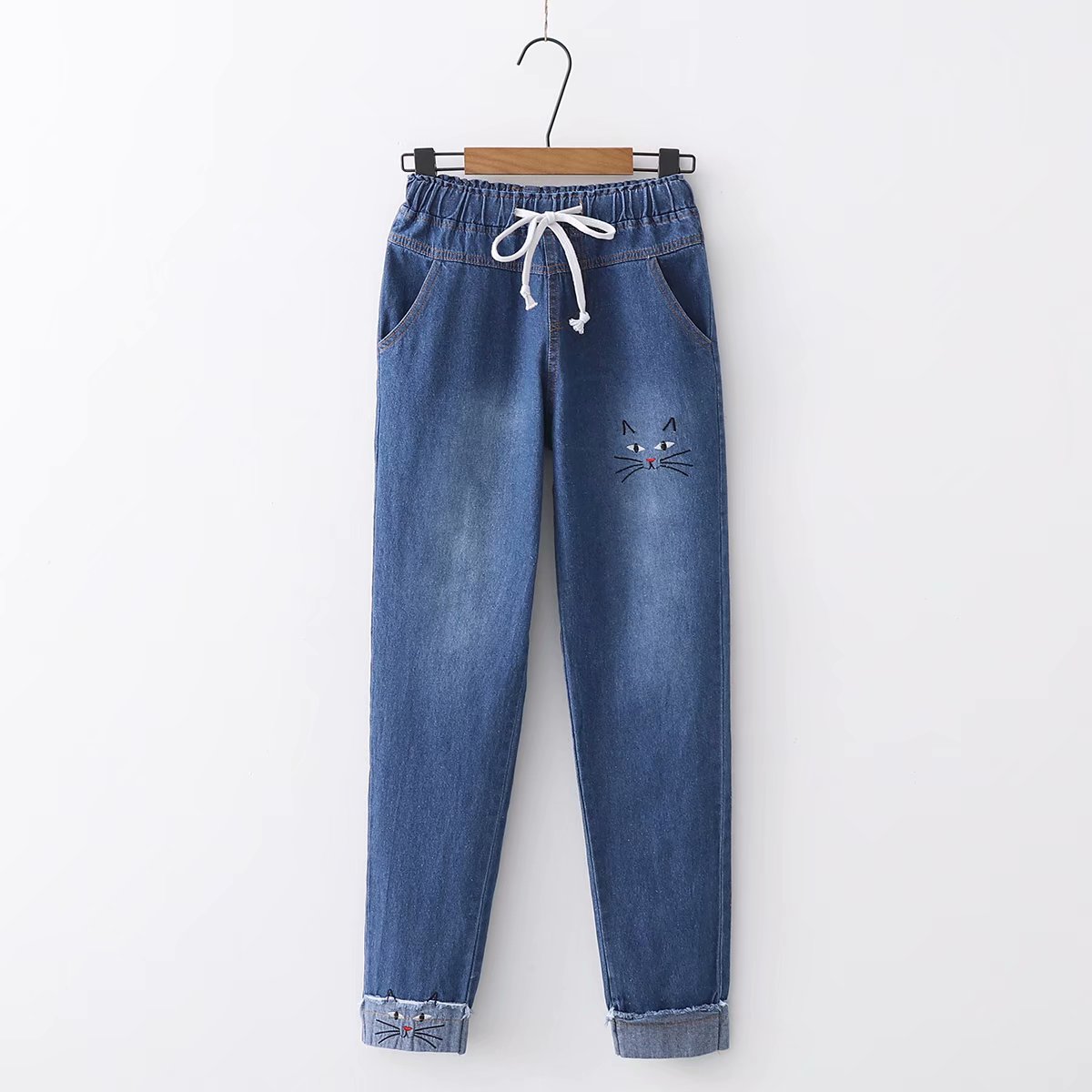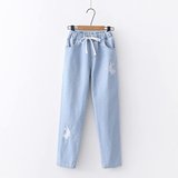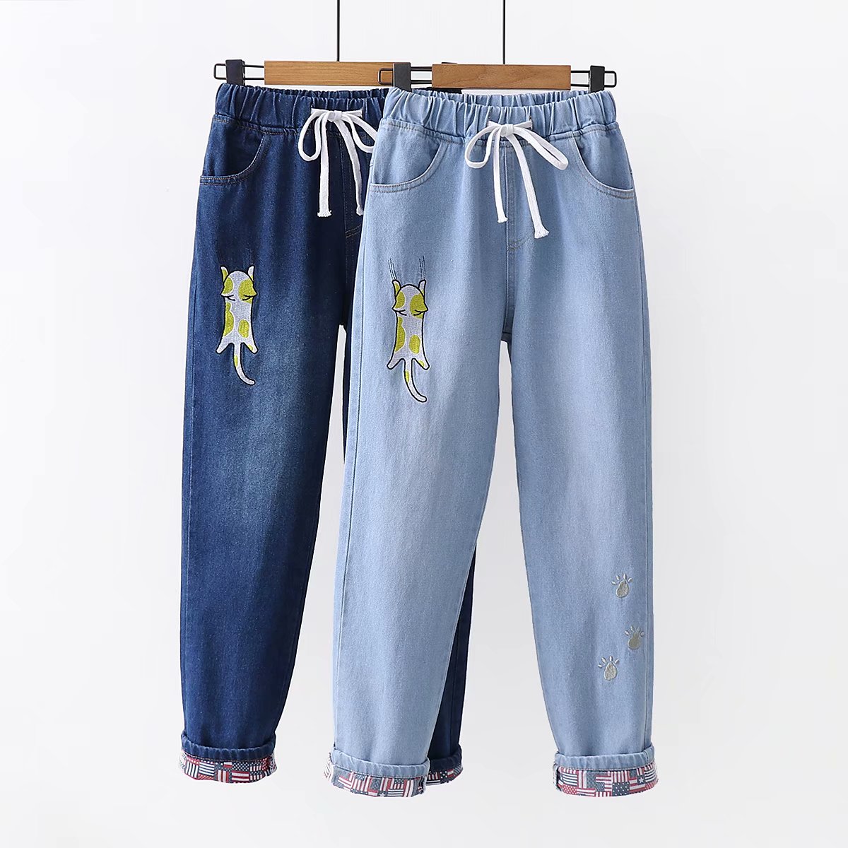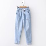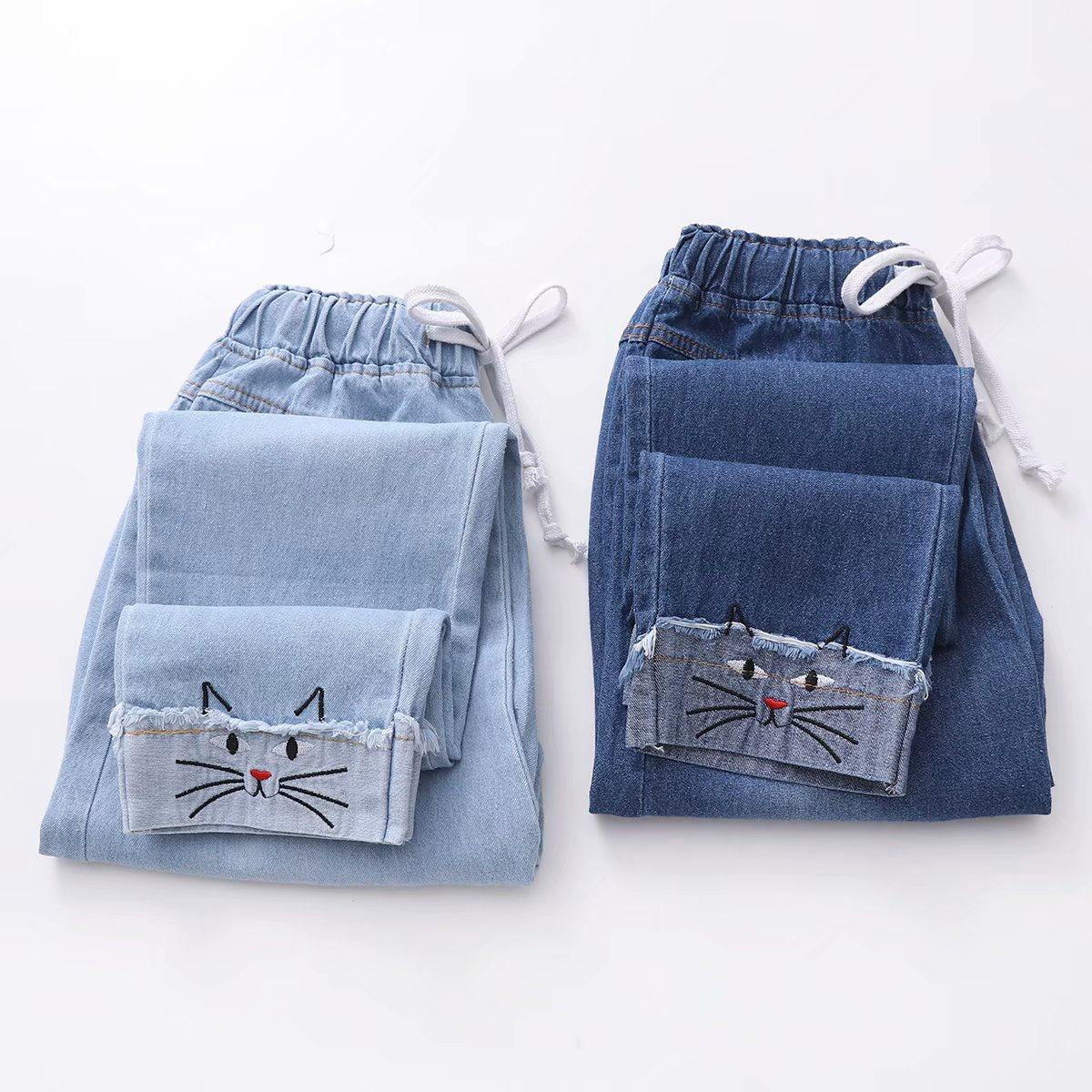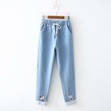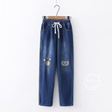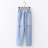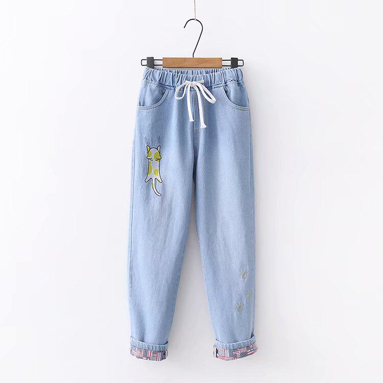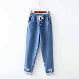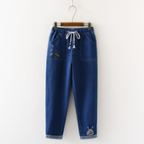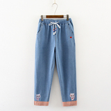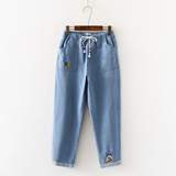 Японские осенние джинсовые милые джинсы для школьников и студентов, штаны, для средней школы, с вышивкой