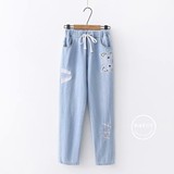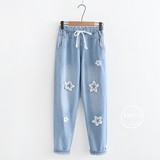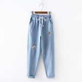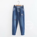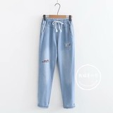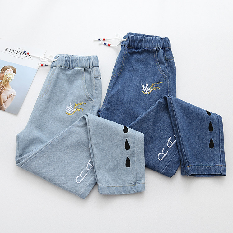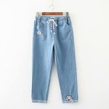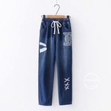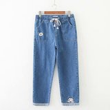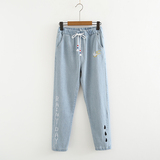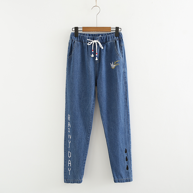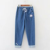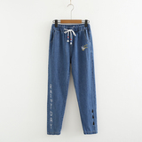 Японские осенние джинсовые джинсы, штаны для школьников и студентов, для средней школы, с вышивкой