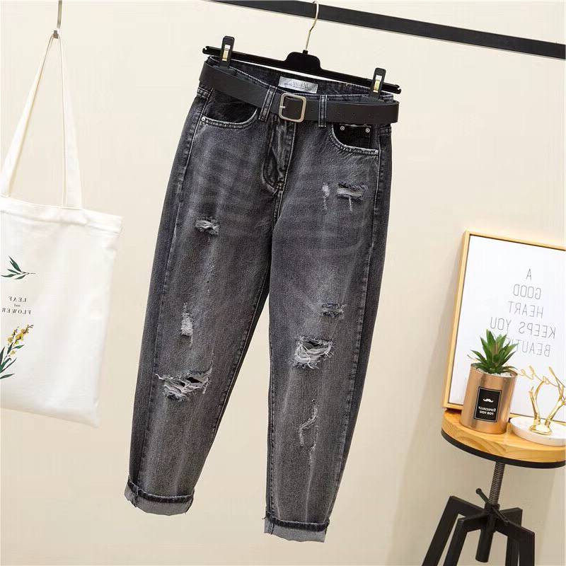 Джинсы, осенние штаны, высокая талия, в корейском стиле, большой размер, по фигуре, свободный прямой крой