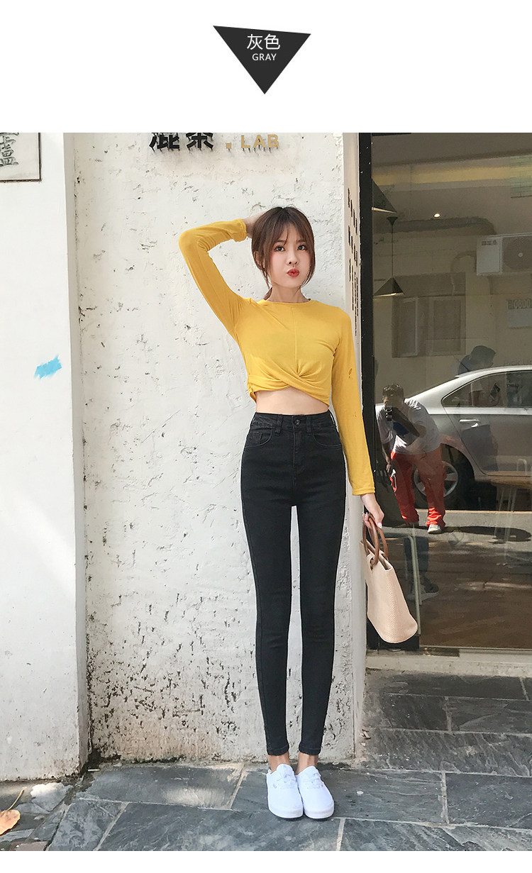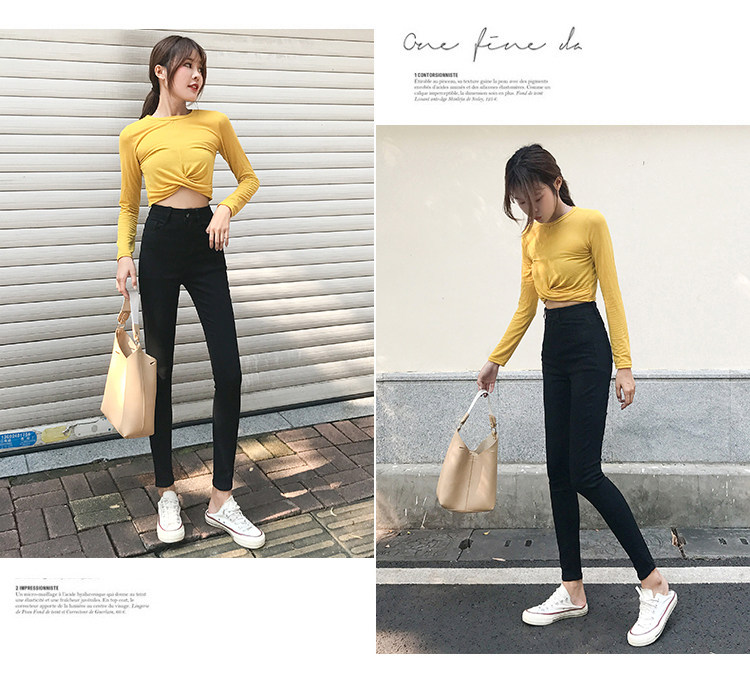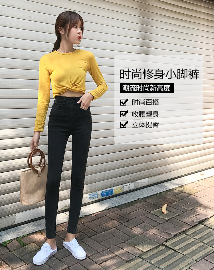 Штаны, джинсовые черные джинсы, высокая талия, в корейском стиле, по фигуре