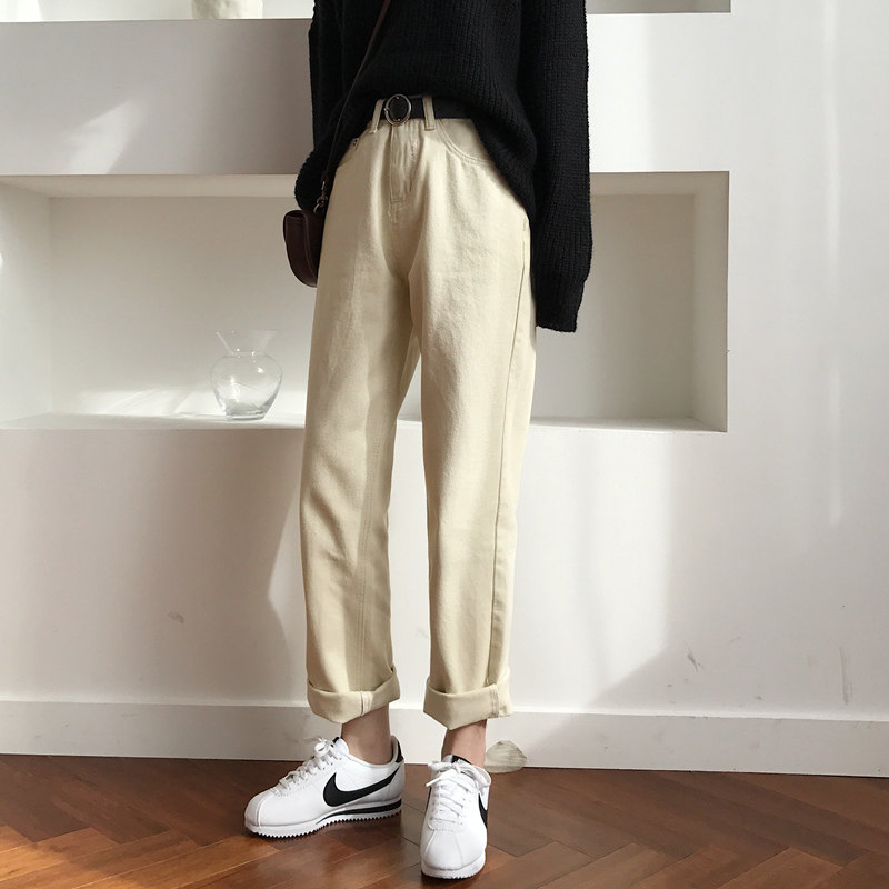 Белые прямые свободные джинсы, желтые штаны, 2025 года, осенние, высокая талия, облегающий крой