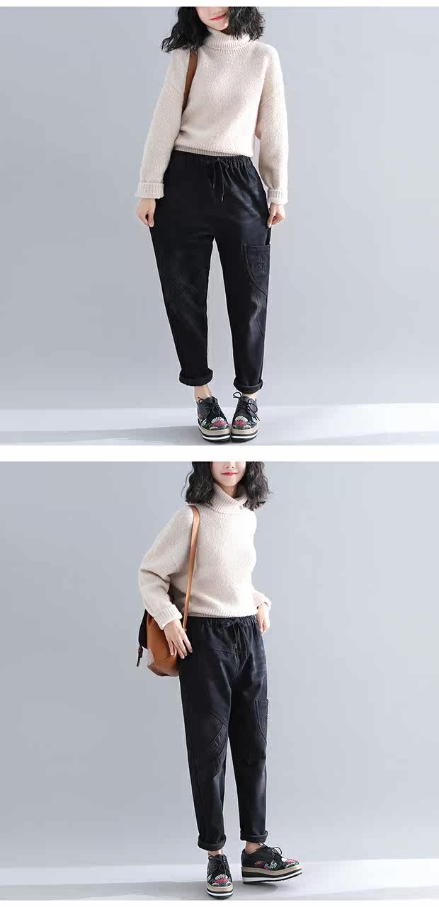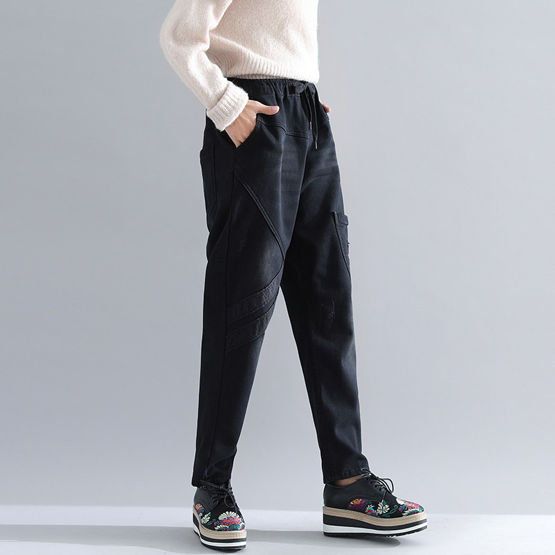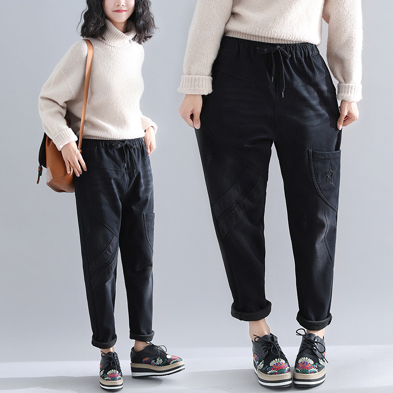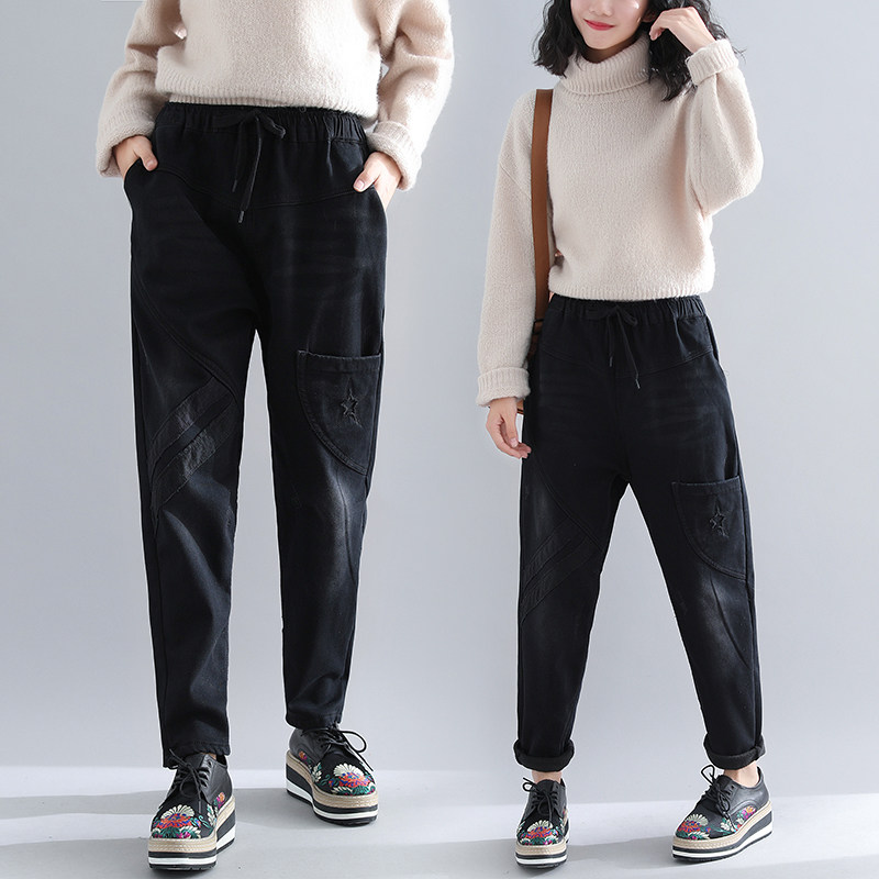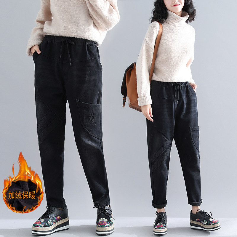 Зимние штаны, утепленные удерживающие тепло джинсы с начесом, большой размер, коллекция 2023, свободный крой, эластичная талия