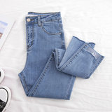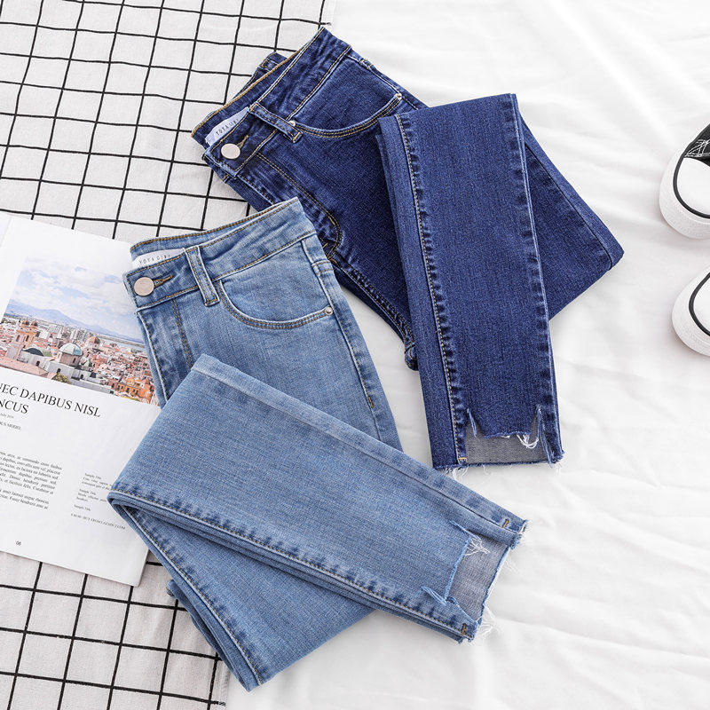 Джинсы, осенние штаны, светлый карандаш для школьников, 2023, высокая талия, в обтяжку, по фигуре