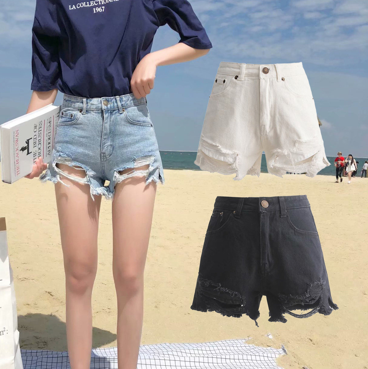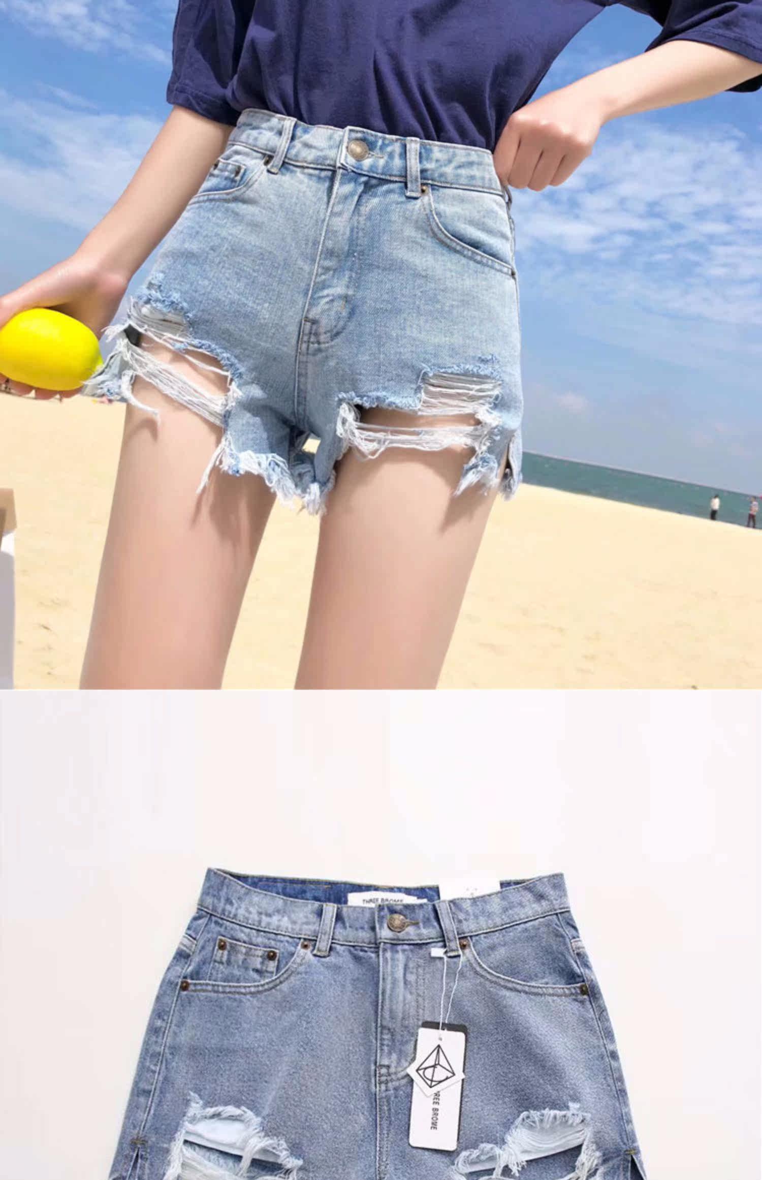 Джинсы, шорты, осенние штаны, высокая талия, популярно в интернете, 2019, в западном стиле