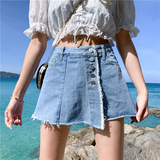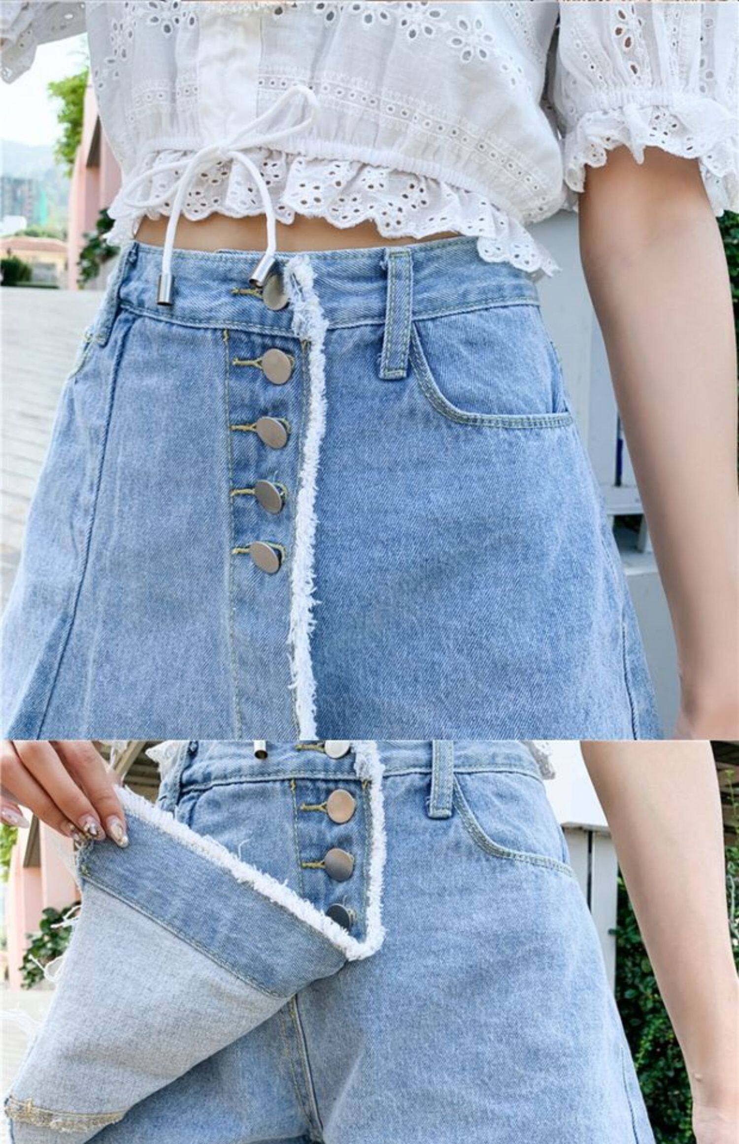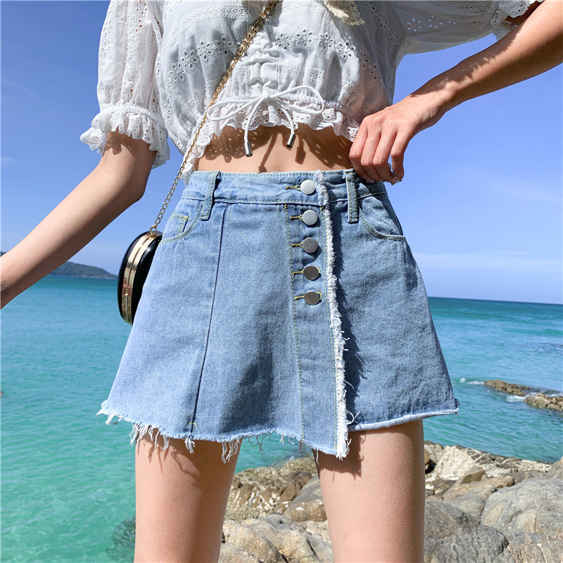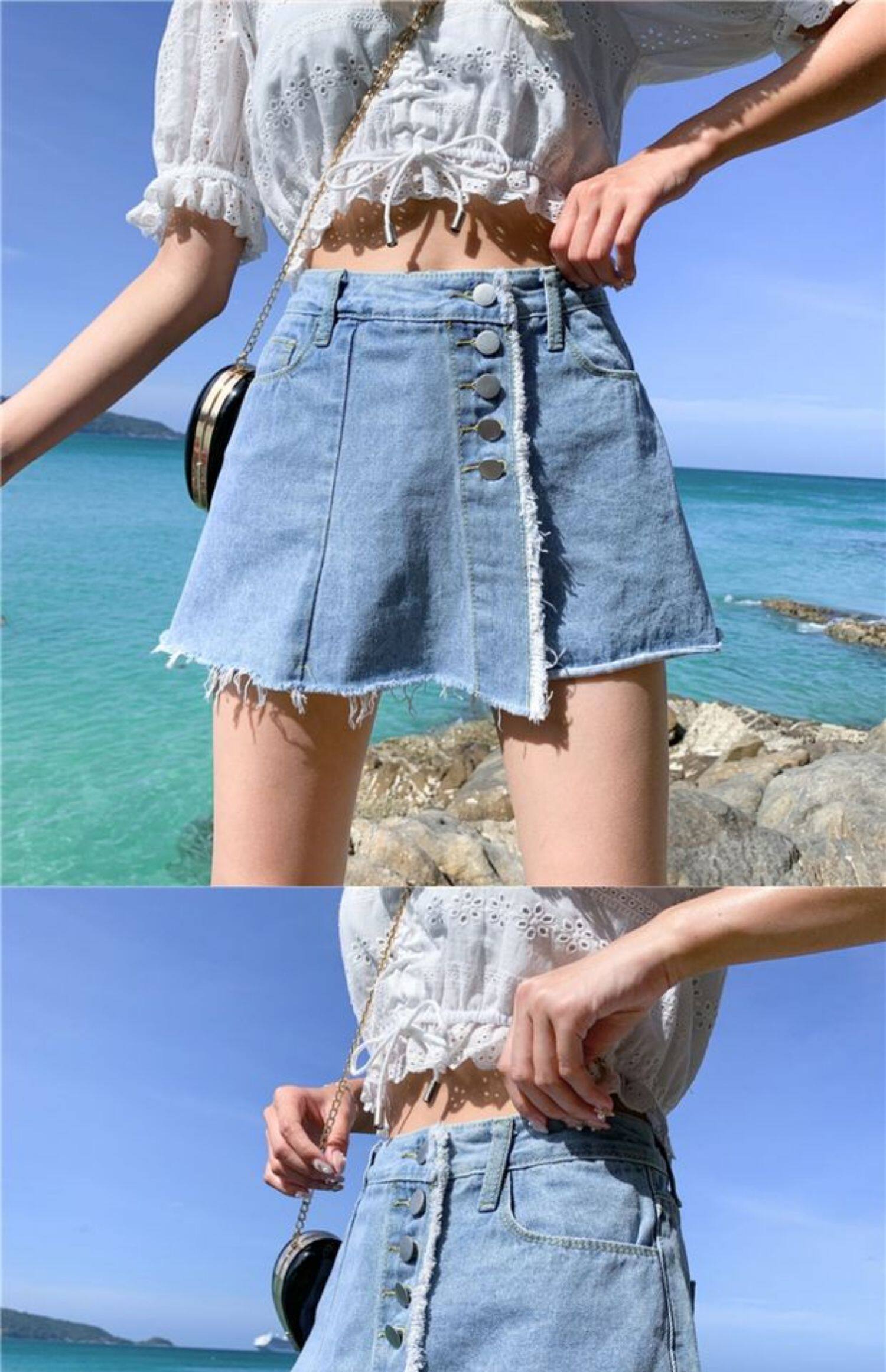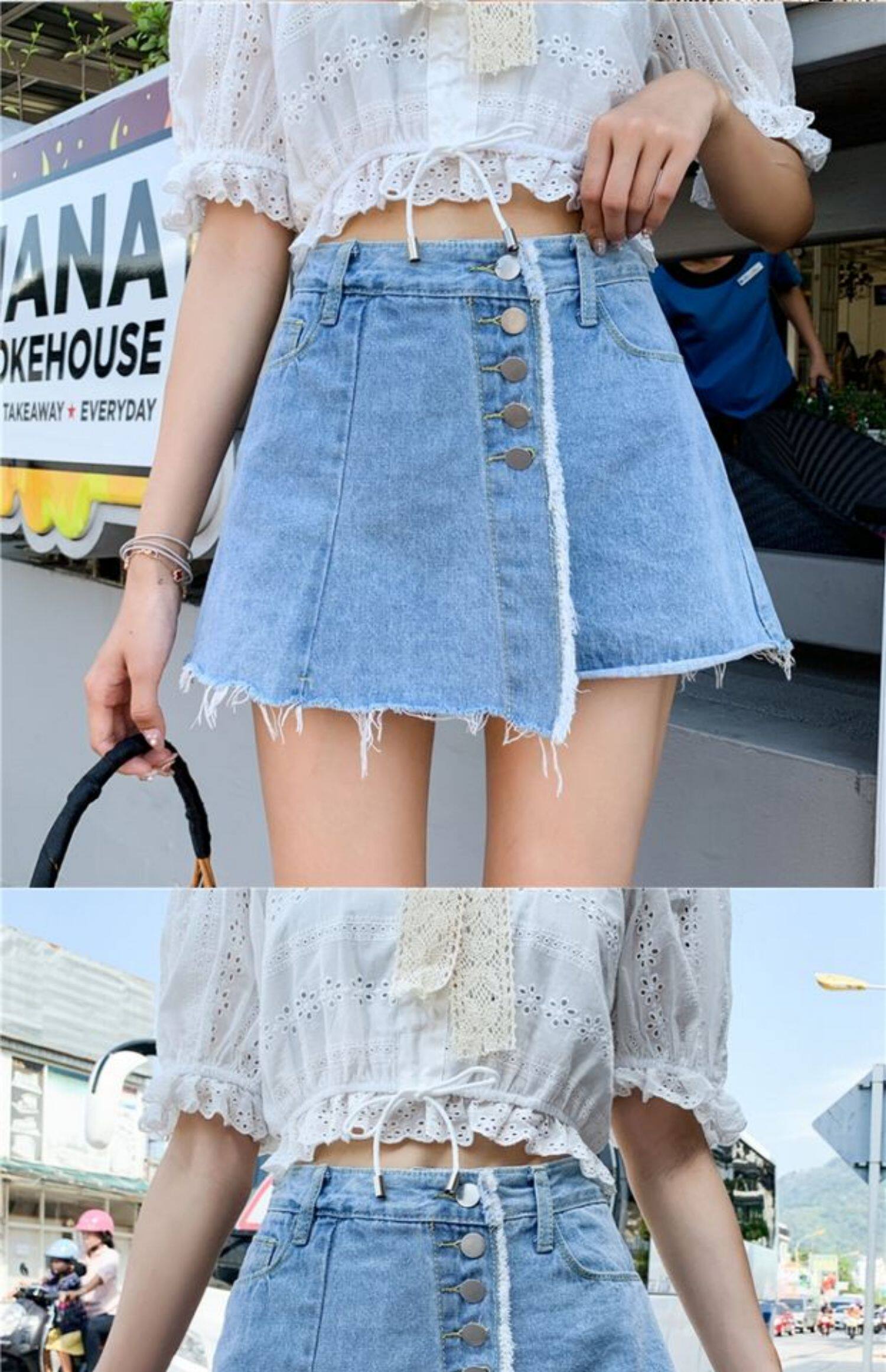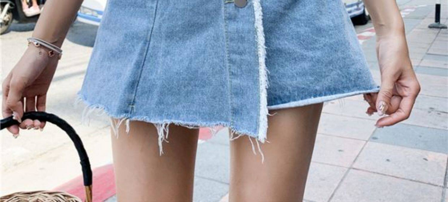 Джинсовая юбка, шорты, летние штаны, в корейском стиле, высокая талия, большой размер, свободный крой